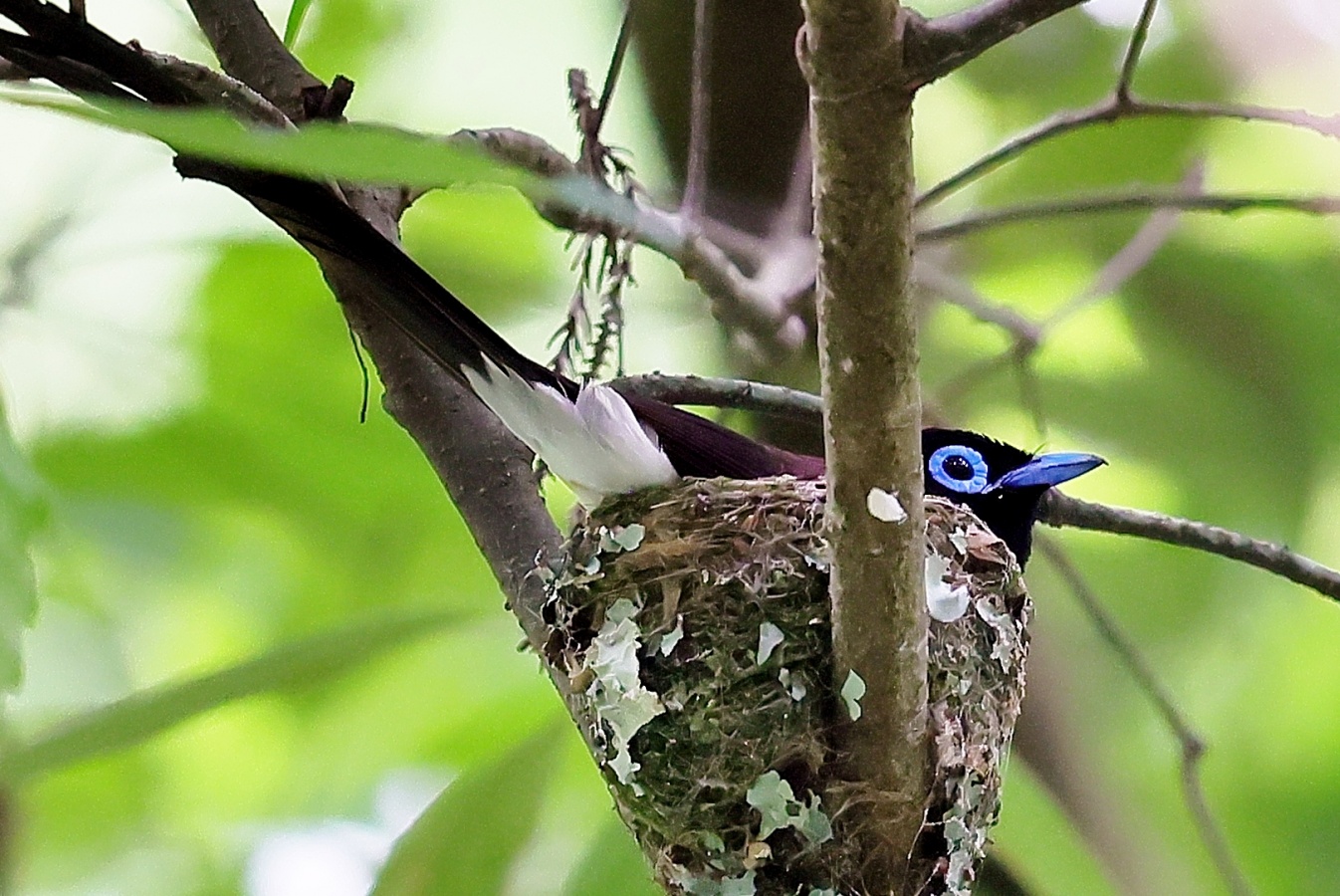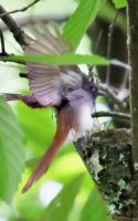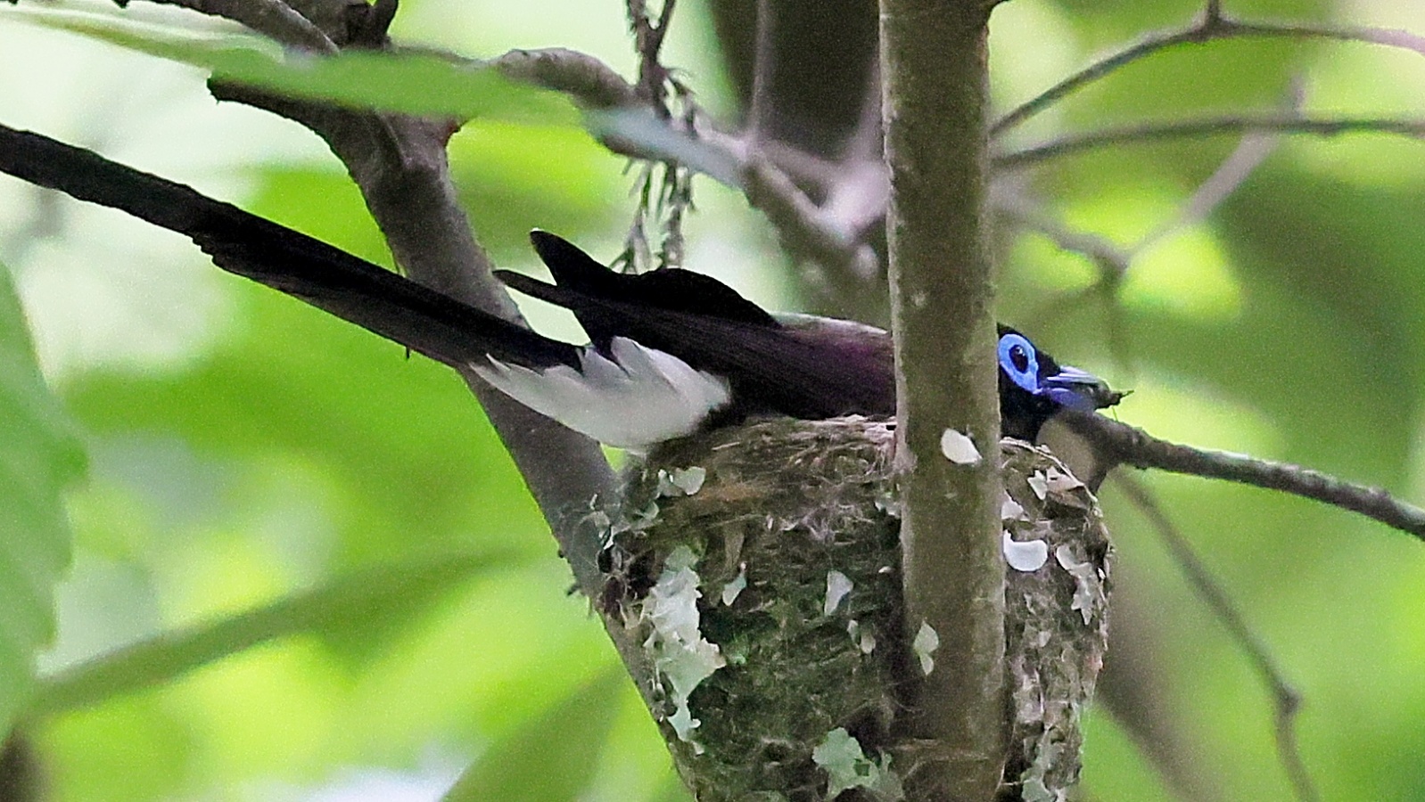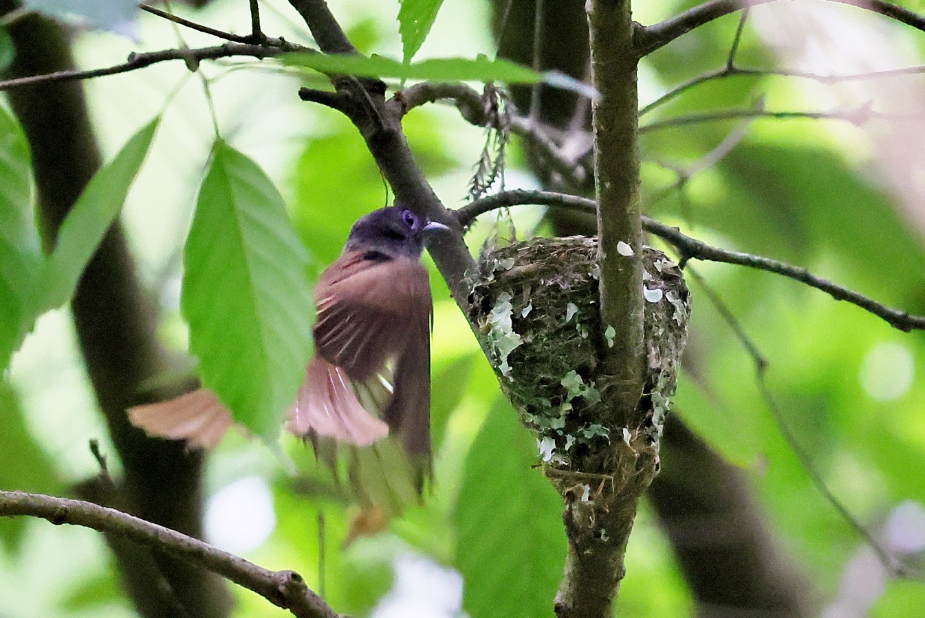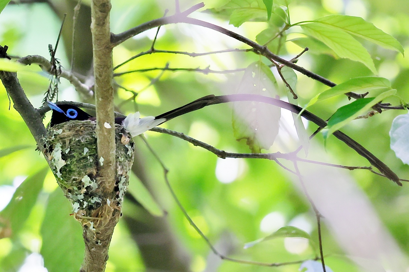 今回の写真も巣で給仕しているサンコウチョウですがまだ前回まで載せた巣とは違う場所の小さくて巣からまだ頭が見えていません! 前回までの巣より近いし~♪