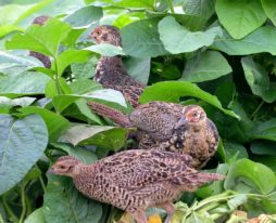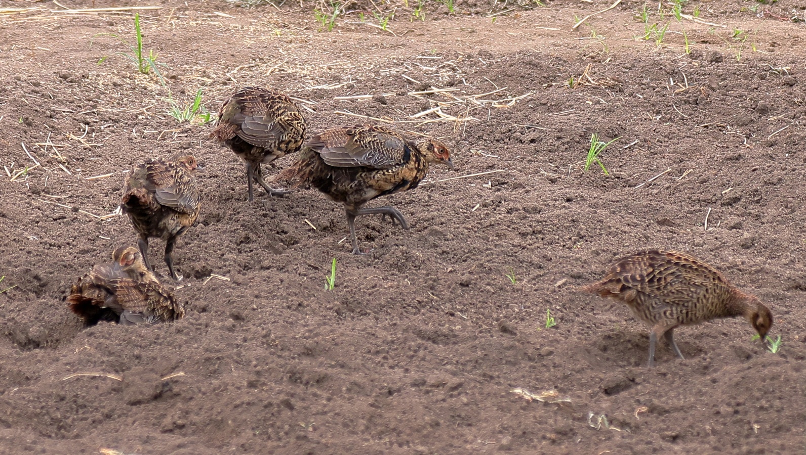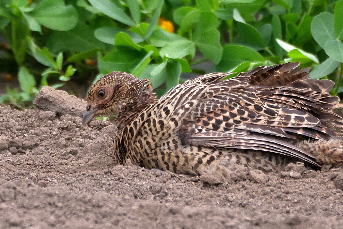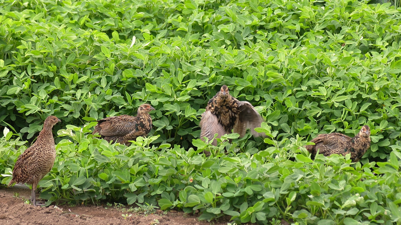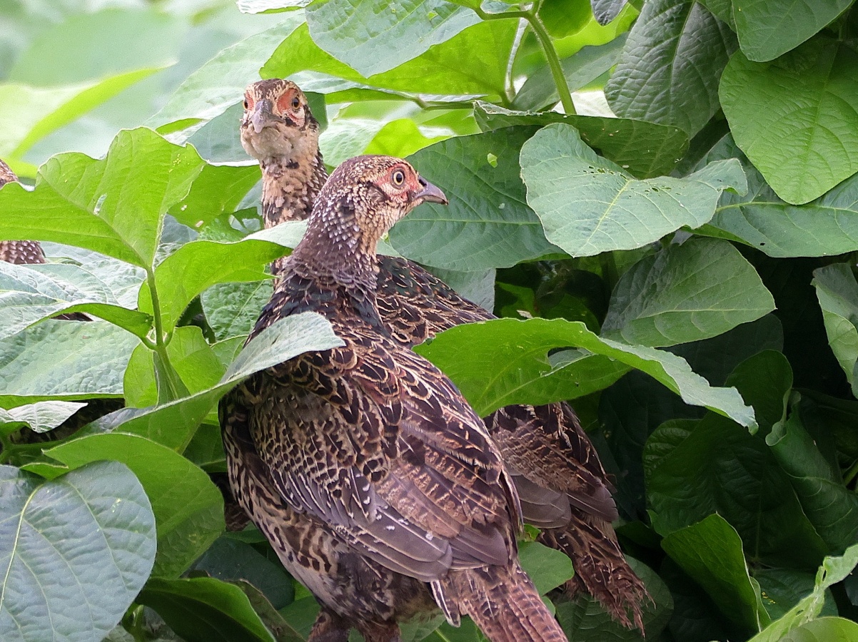 キジの若鳥です~この時には8羽も確認出来ました。~♪……この前日には親を含めてな”なんと!~14羽も見れたそうです!    (7月25日に撮影)