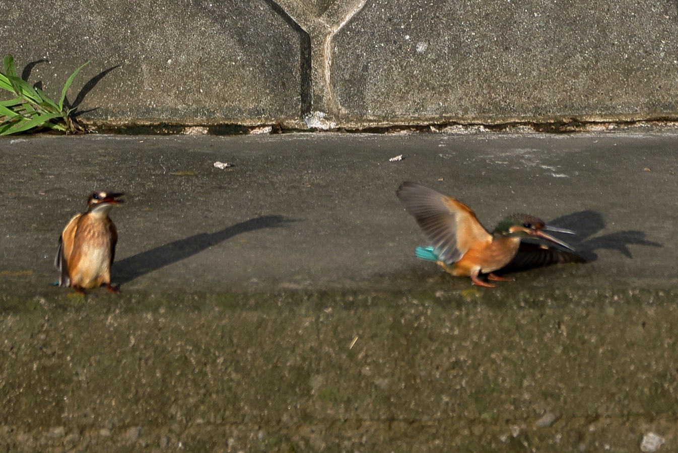 まあ~毎年の事ですがこれから来年の2月の半ばまではチョット”厳しい早朝鳥撮りの季節になってきました~!  少し前に撮ったカワセミのまだ激しくない親子?兄弟?のバトルです。