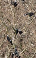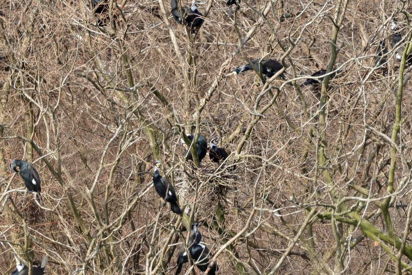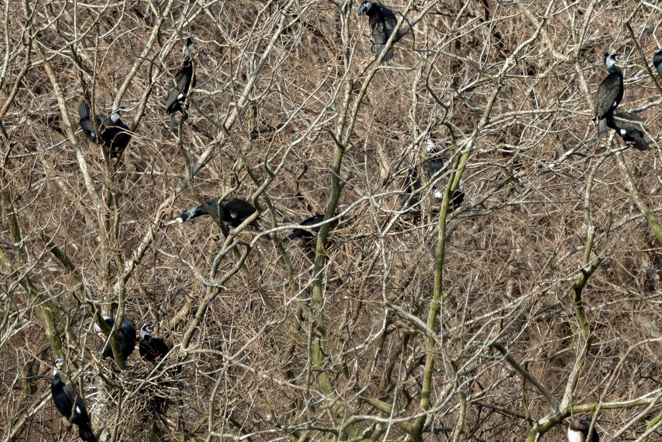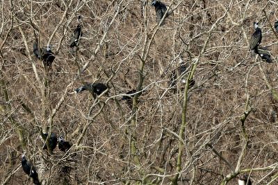 林道を歩いているとなんだかとても大きな鳴き声が聞こえ(獣かな?)……何の鳴き声だろうなぁ~?と、15分位、鳥を探しながら歩いて、開けた対岸が見える場所に出て~声の先を見ると……なんとの集団でした3~40羽は居たと思います~喧嘩でもしているかの様に湖畔中に響き渡る様な大きな声で…‥……。