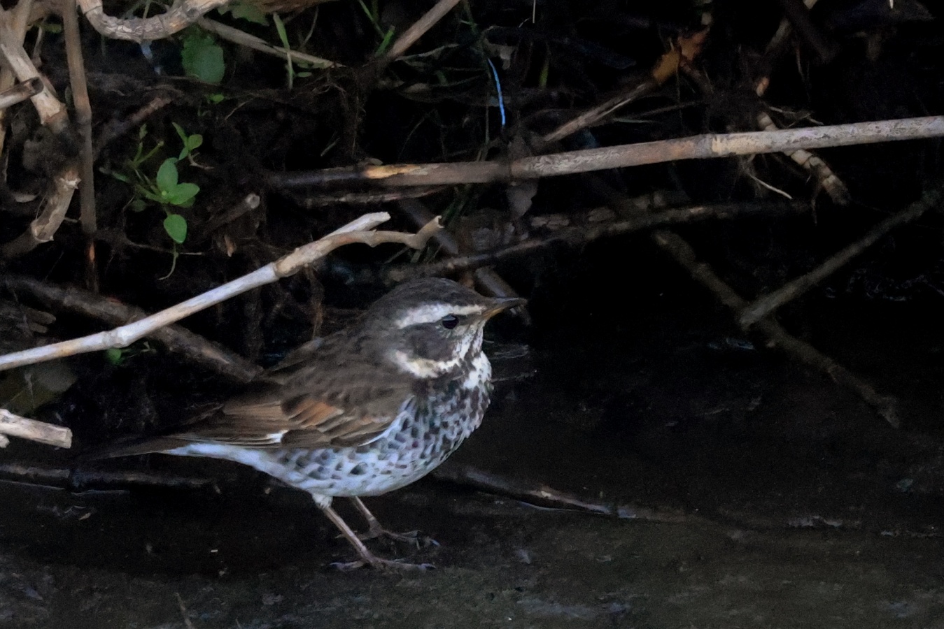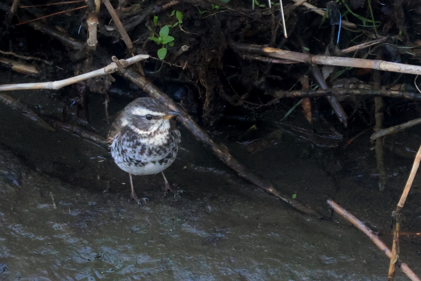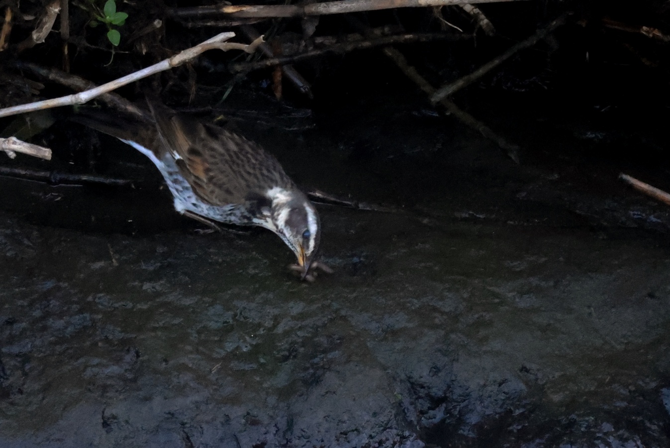 チョット大き目なミミズを食べた後はだいぶ長い間、休憩をしていたツグミ……。