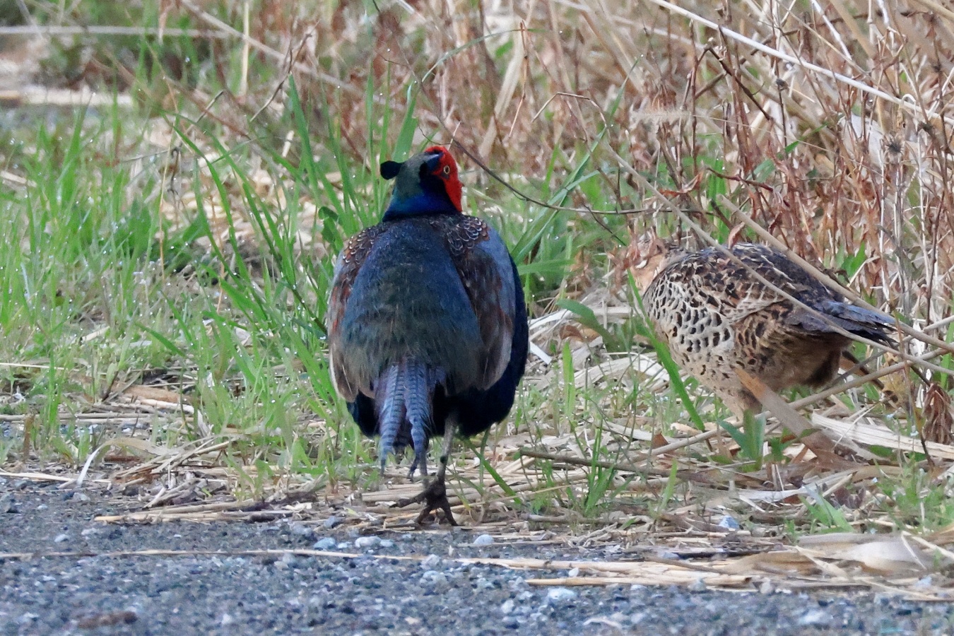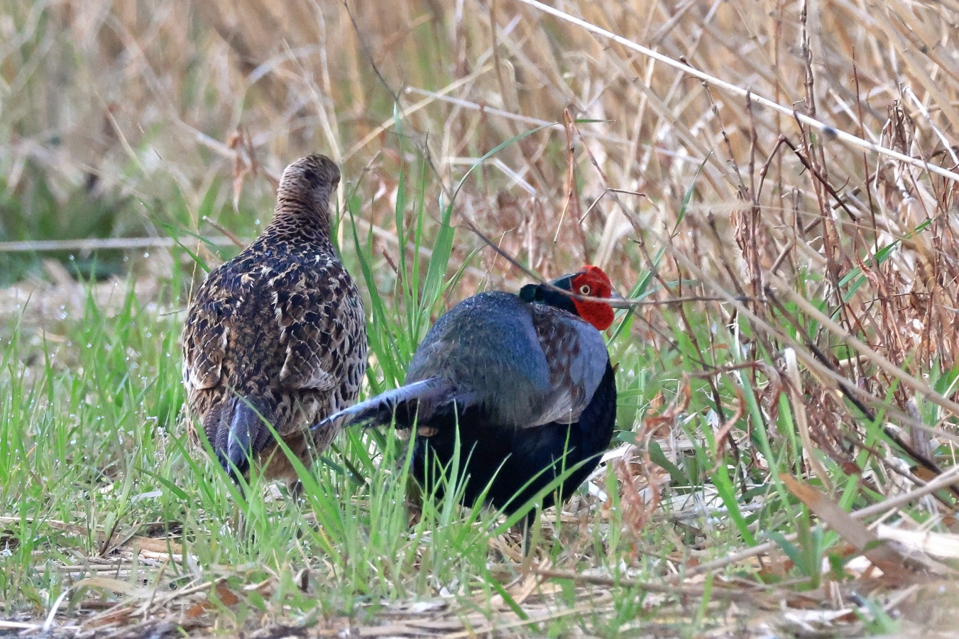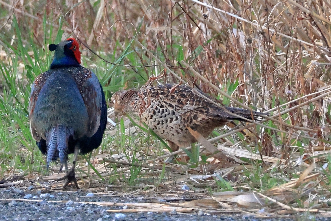 今朝は早朝鳥撮りで公園に何時も居るキジのカップルを見かけました。ただこの公園の中のカップルの居る場所は~公園の管理の都合上か?……この先は多分”葦原も取り除かれ、折角”巣を造っても壊されてしまうんじゃあないかと?……移動せざるおえないとは思いますが何処へ移動するんでしょか? 公園の北側も南側も其々別のカップルが居るしなぁ~~。