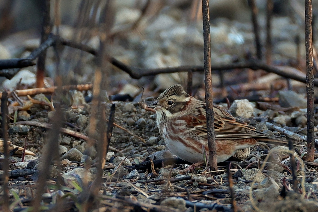 多分”まだしばらく続く~こんなに黒く焦げた葦原での鳥達の写真は二度と撮れないでしょう!~(笑)