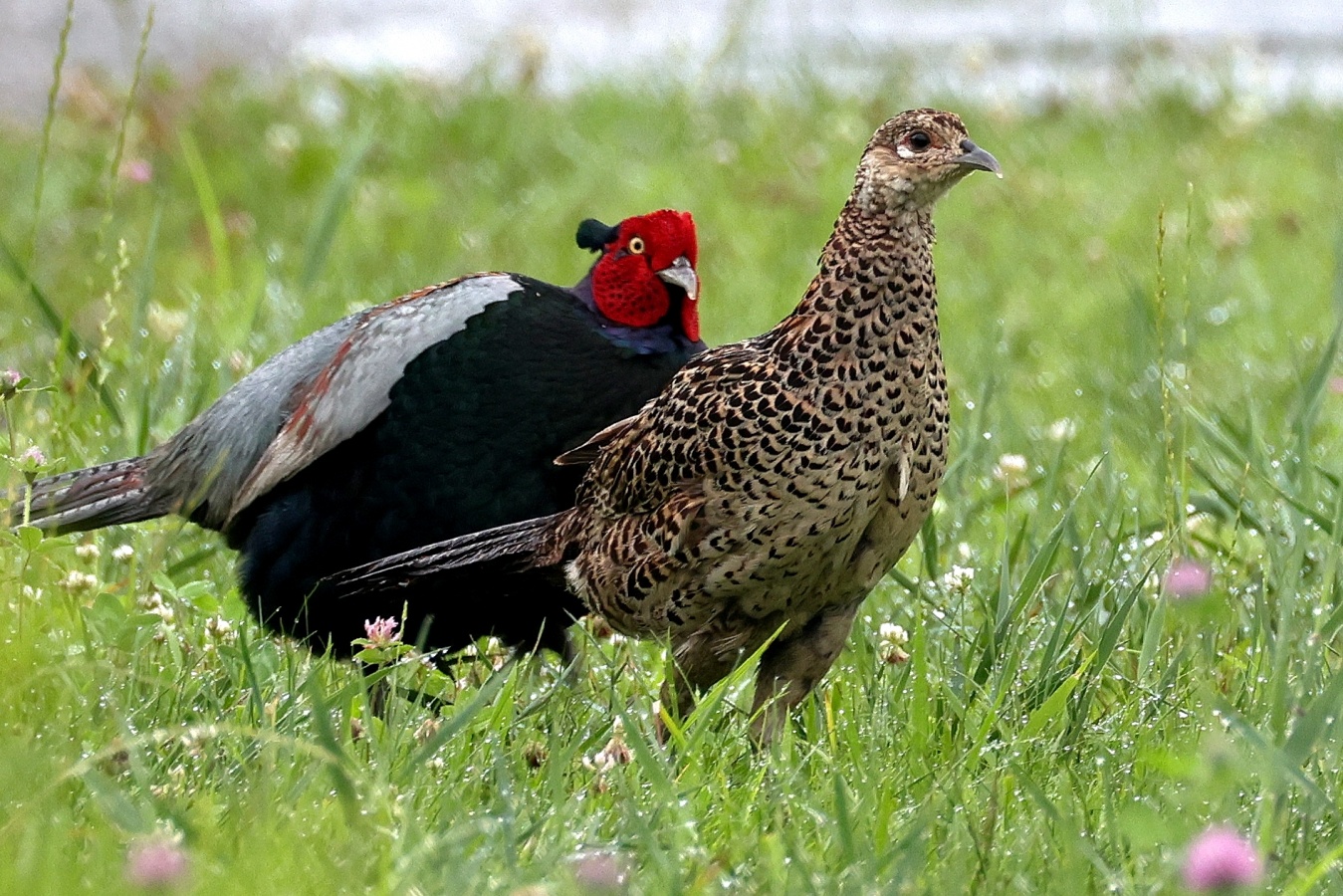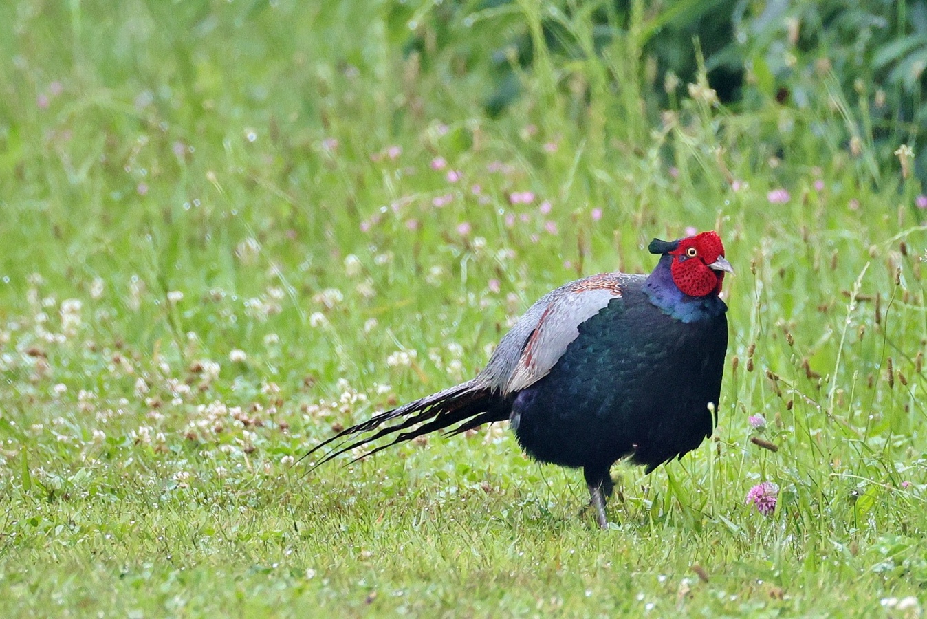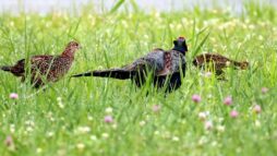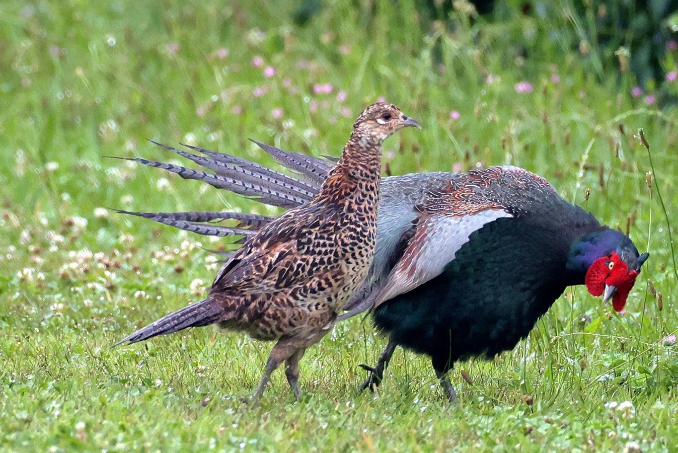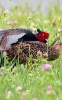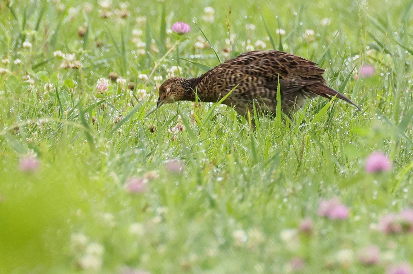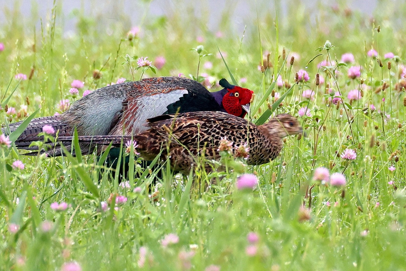 キジの幼鳥と♀親が昨日の雨の合間にだいぶ離れた場所に出てきていました。……しかも昨日は♂親も一緒で♀のキジに対して一生懸命
