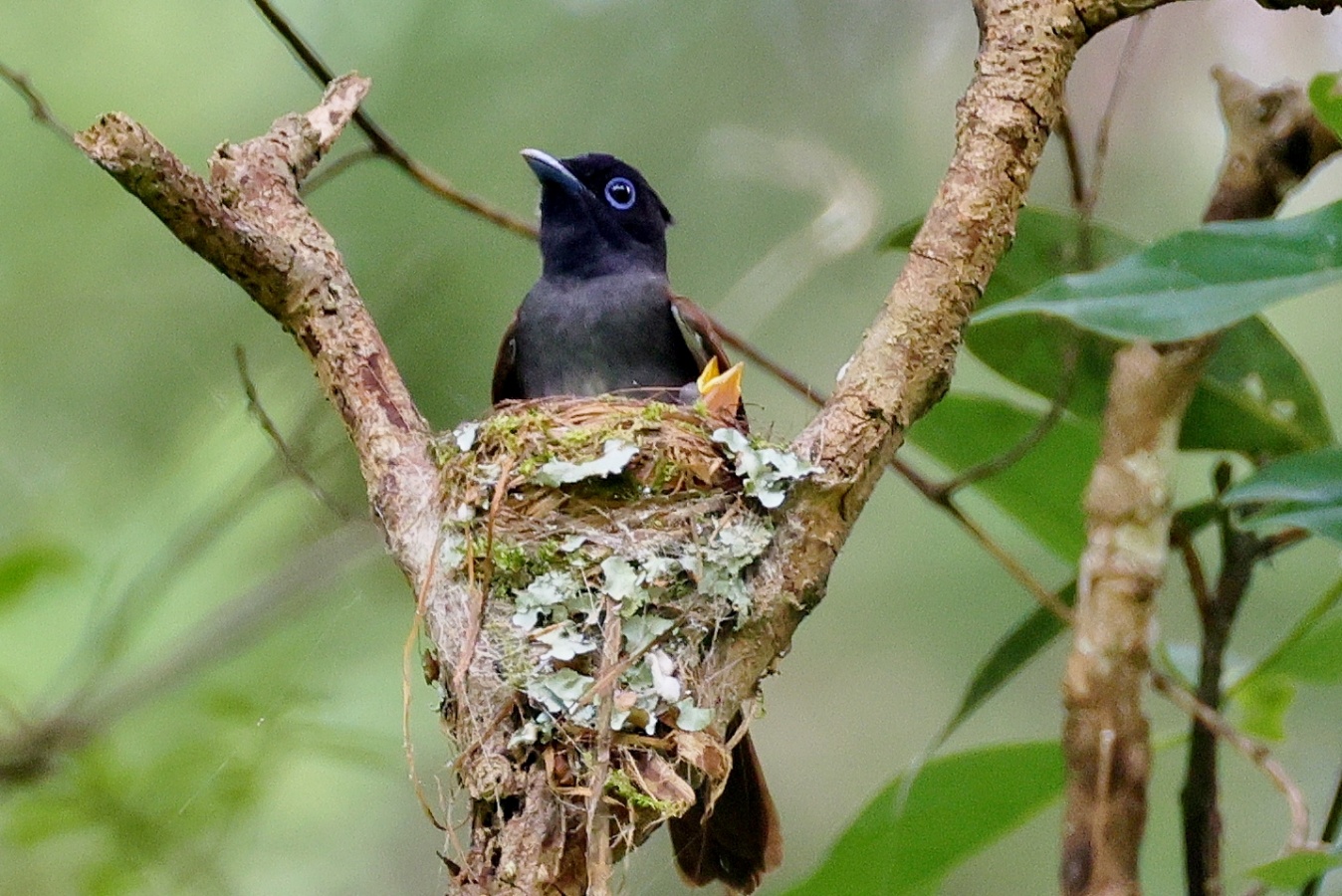 水曜日に撮ったプチ遠征でのサンコウチョウの雛です…‥… 2羽はまだだいぶ小さくて、くちばしの先がチョコット”しか見えませんでしたが巣の中の雛は3羽~確認出来ました!~♪ ……まだ他にも見えていない雛が居るかもしれません。