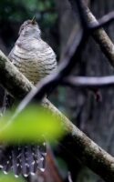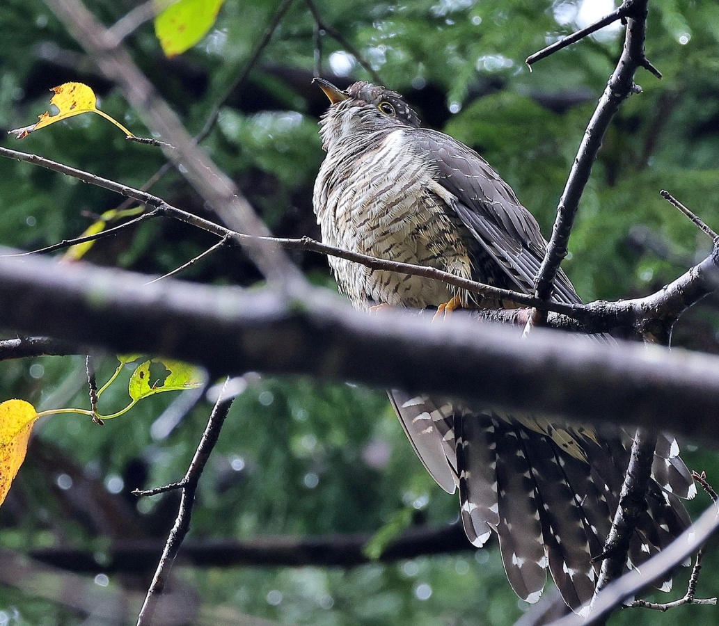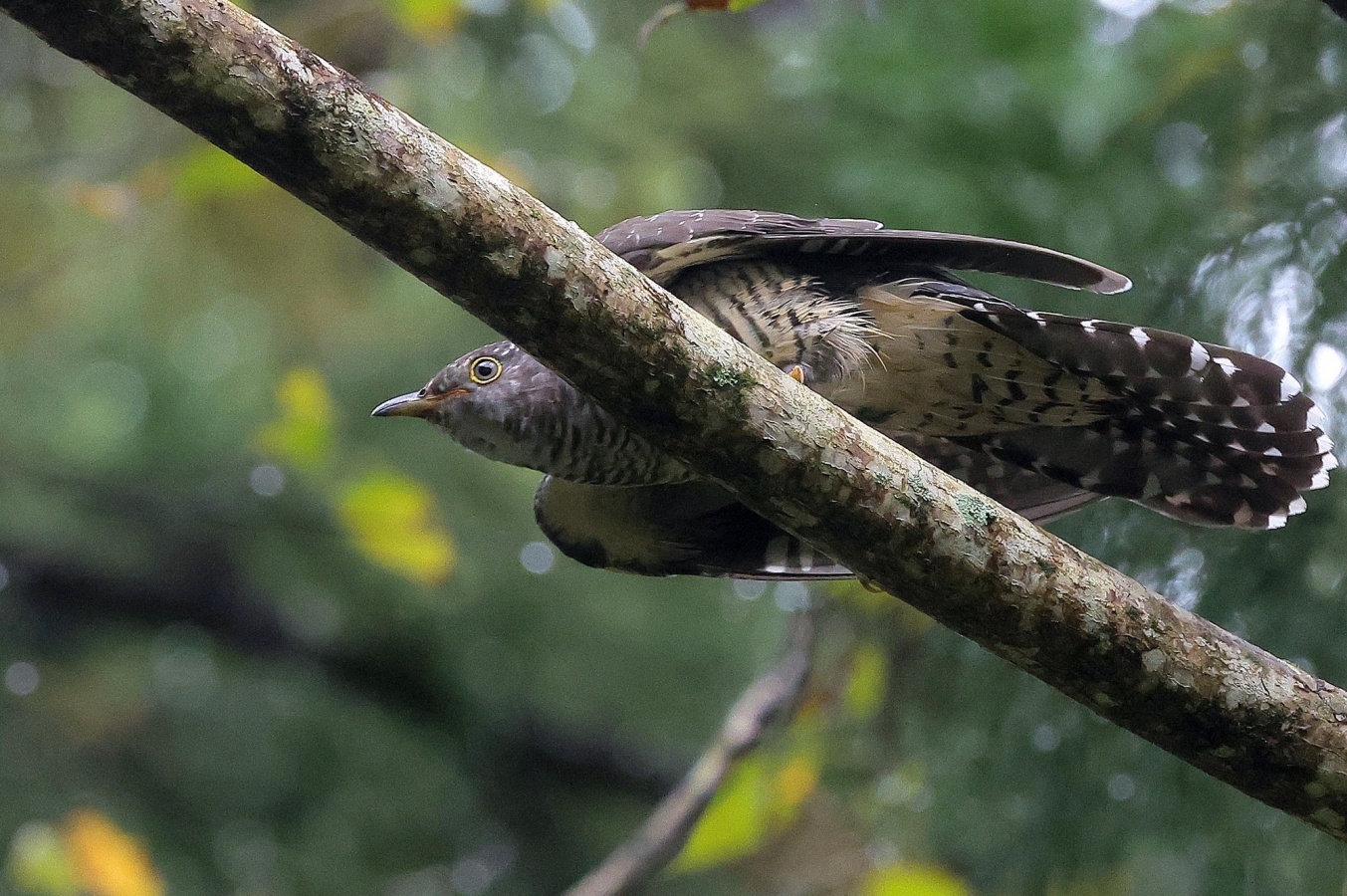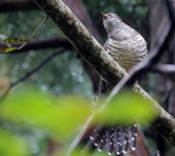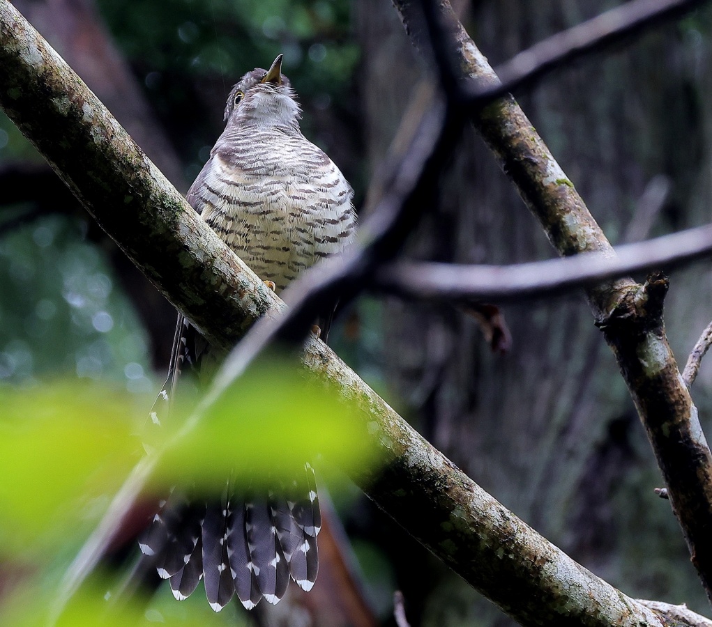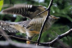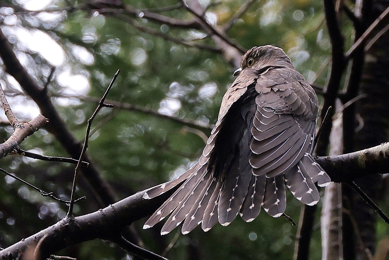 ツツドリ君(青系)がタイミングよく飛んで来て、目の前で羽根を乾かし始めました!