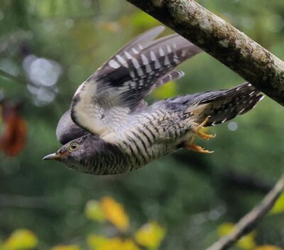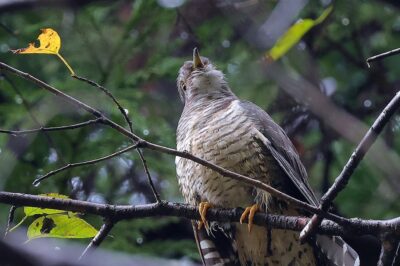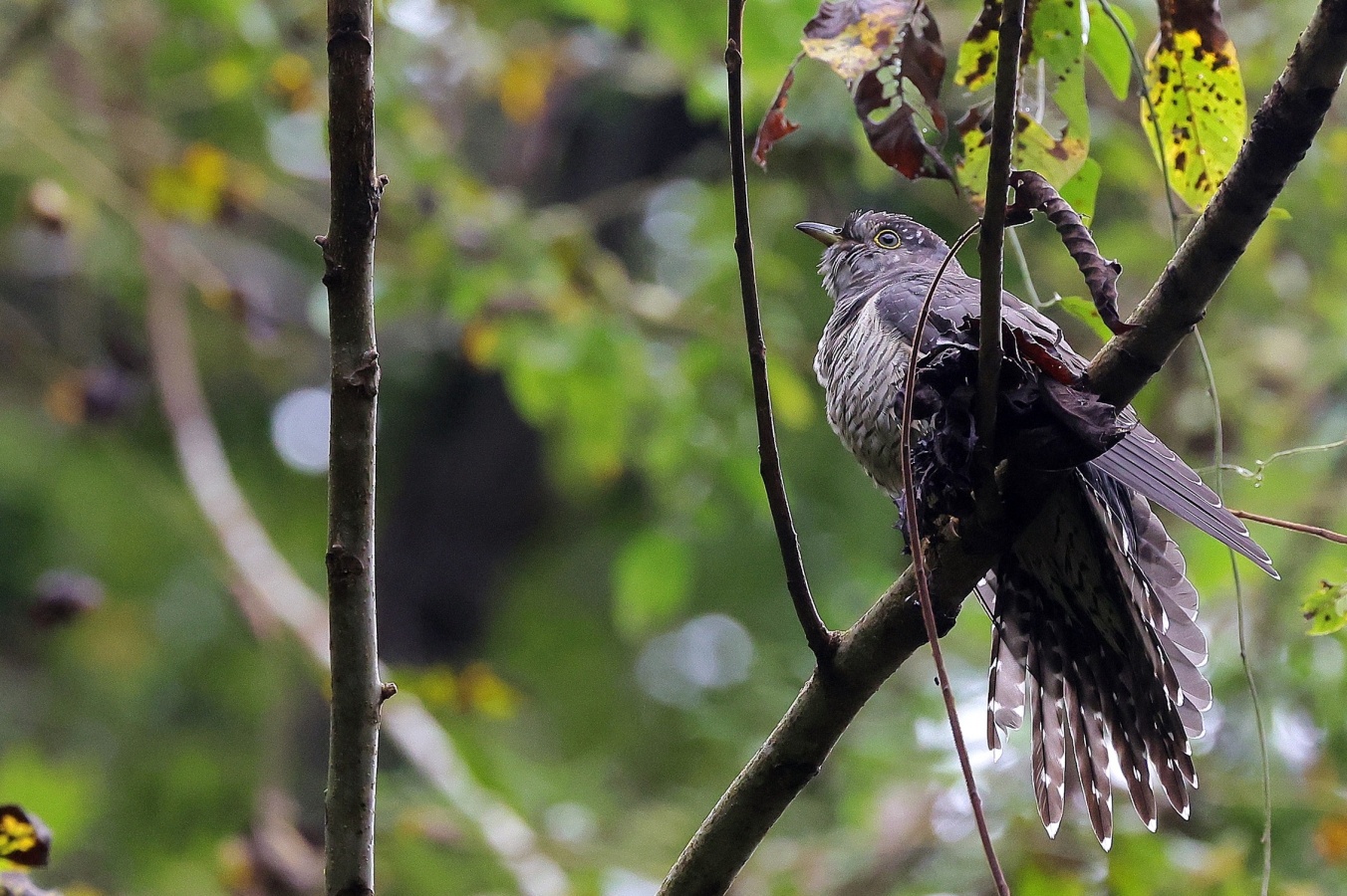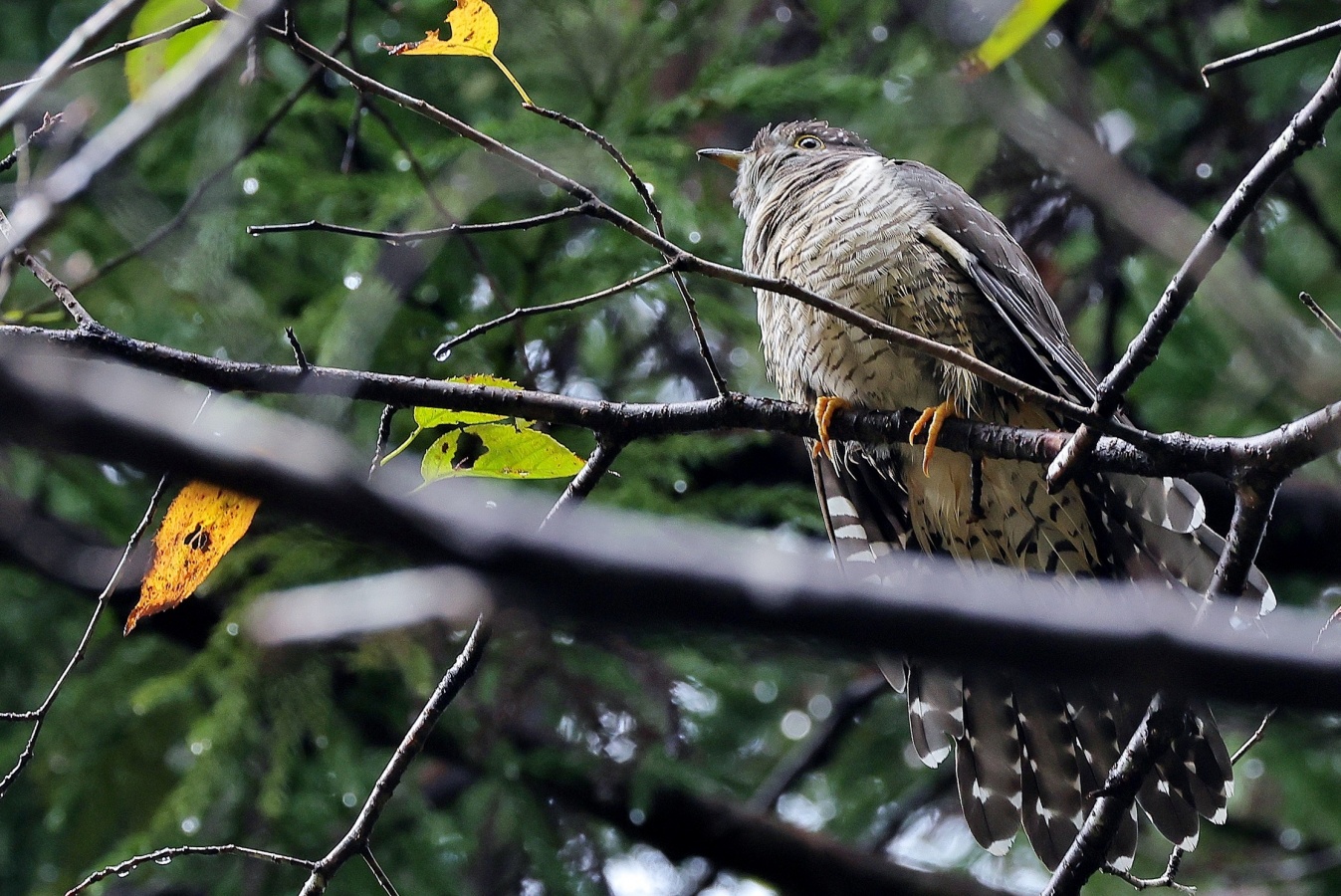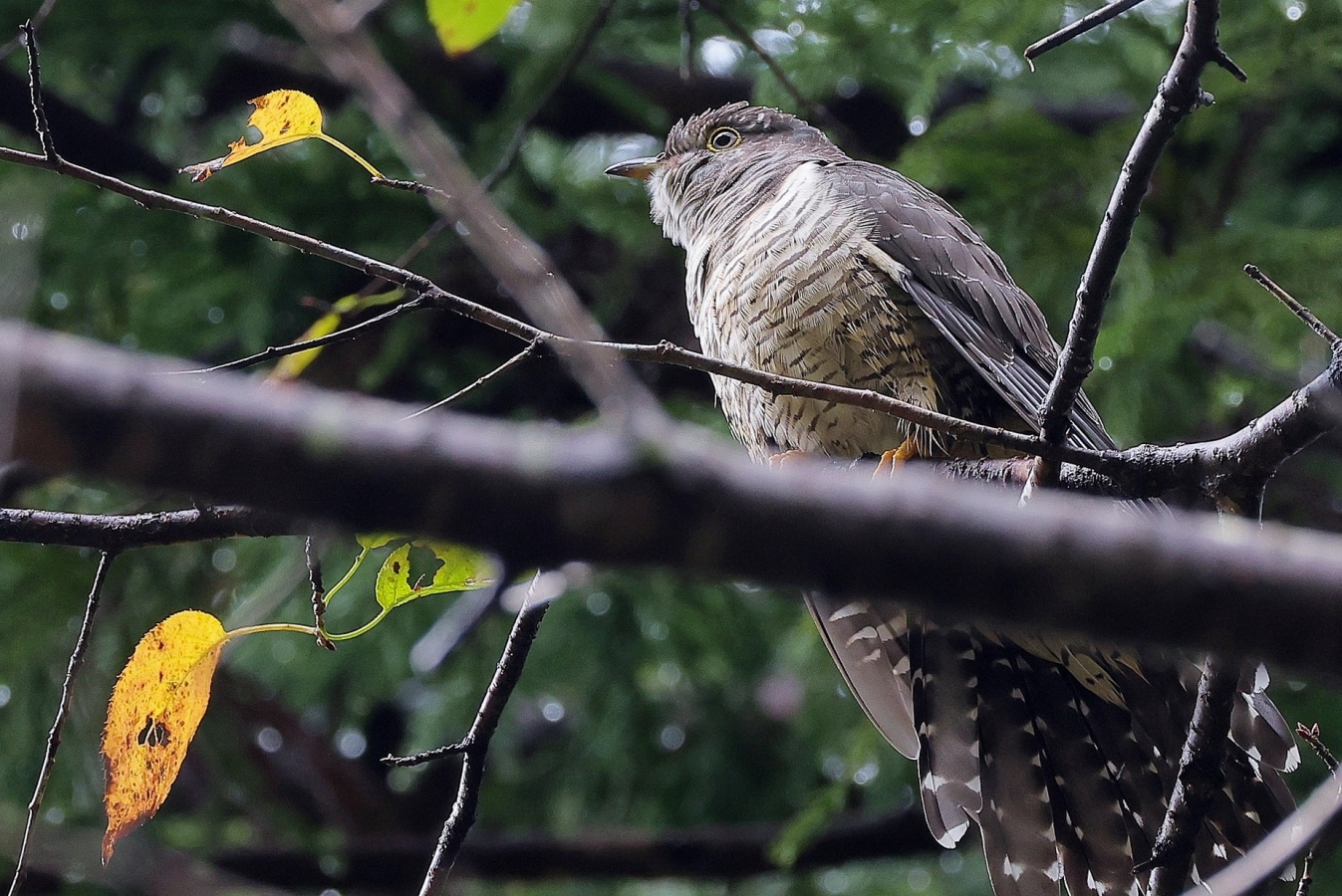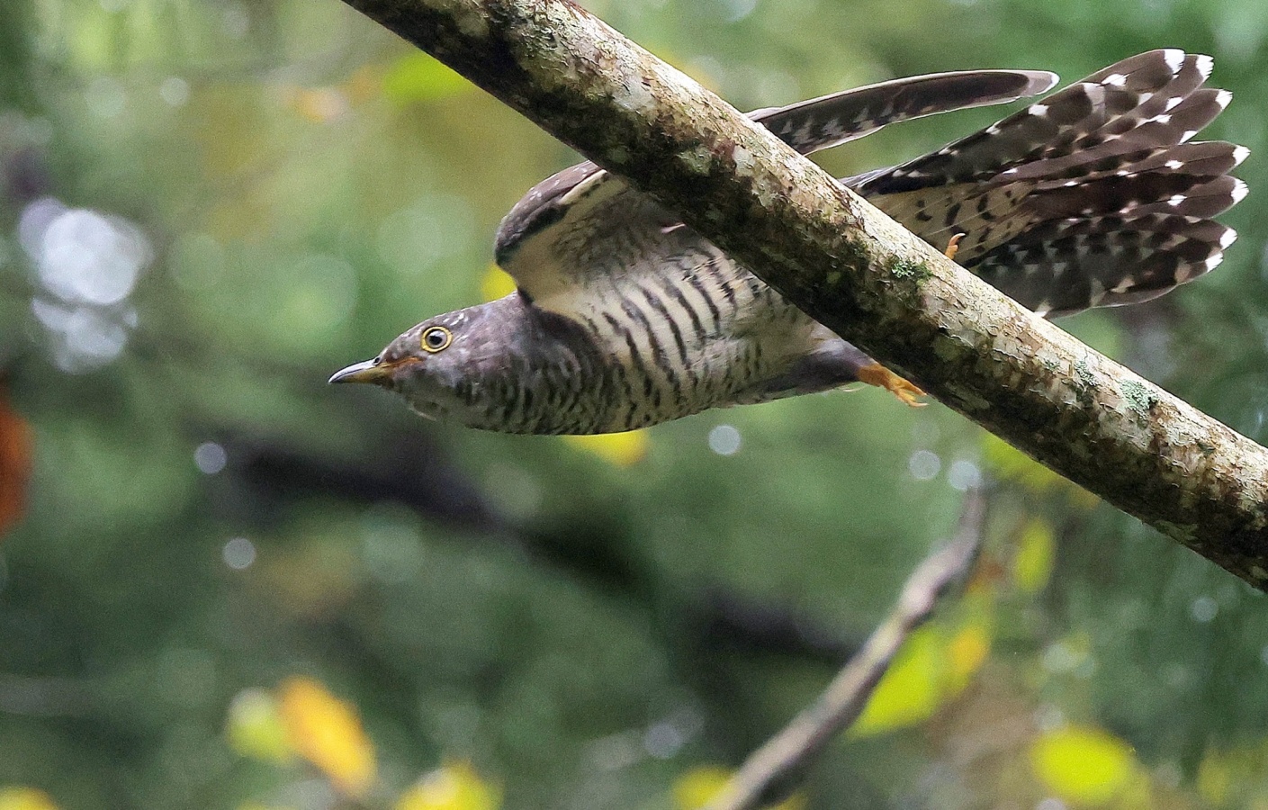 ツツドリ君(青系)がタイミングよく飛んで来て、目の前で羽根を乾かし始めました!