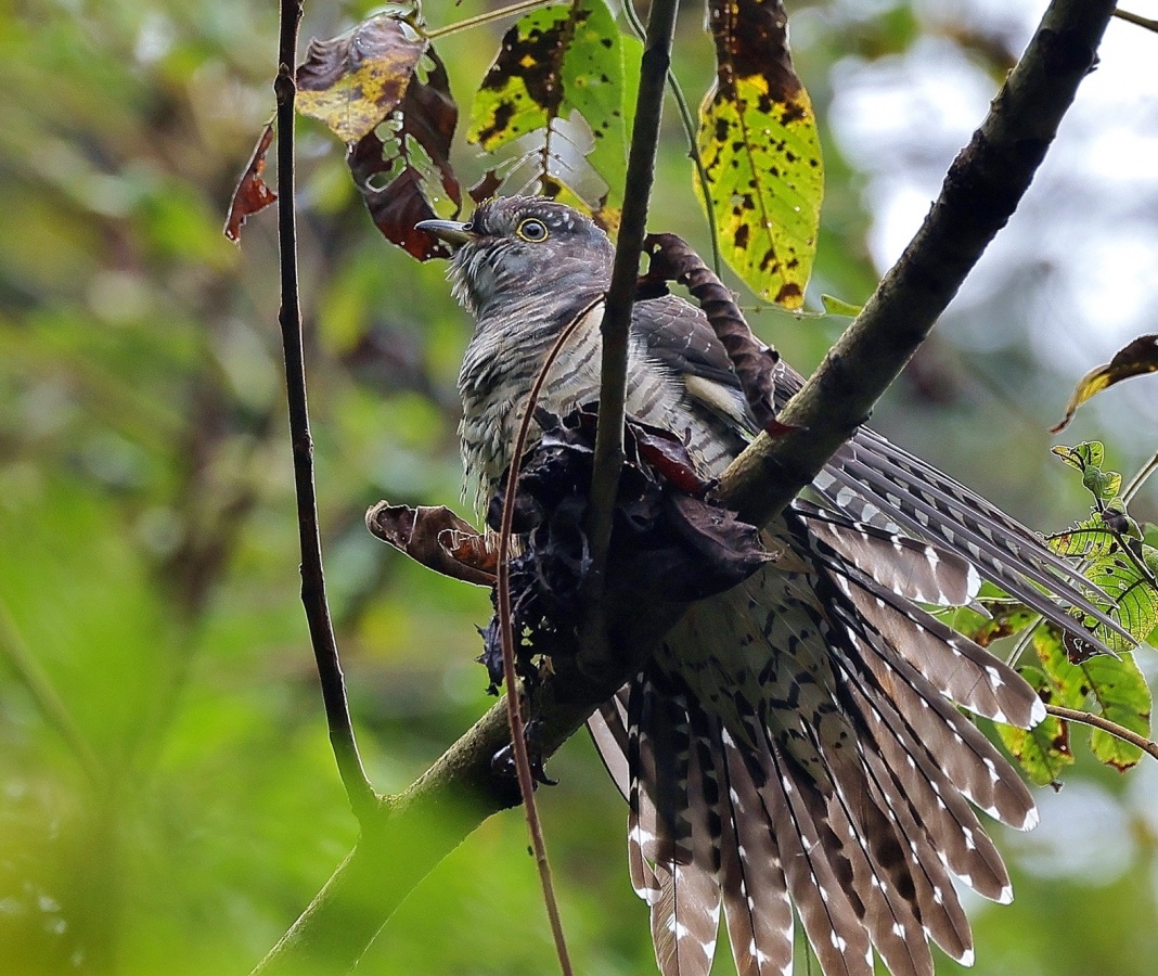 ……撮っているオヤジにもツツドリ君は気が付いていましたが気にすることなく一生懸命羽根をひろげ乾かしているところです。~♪