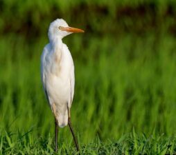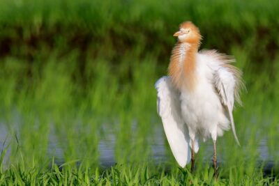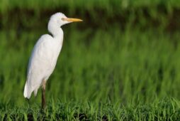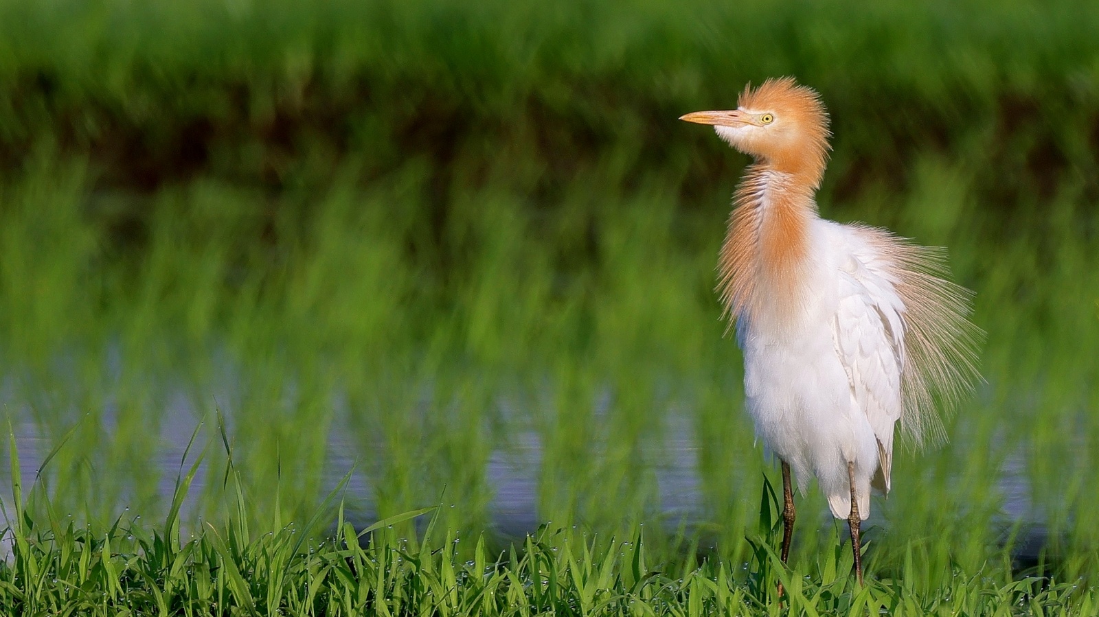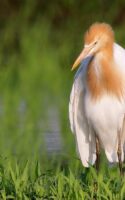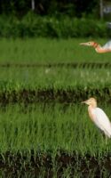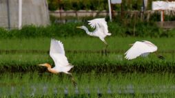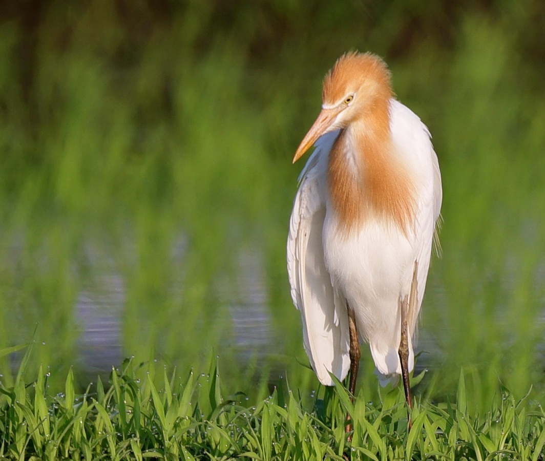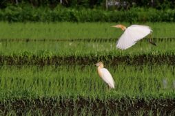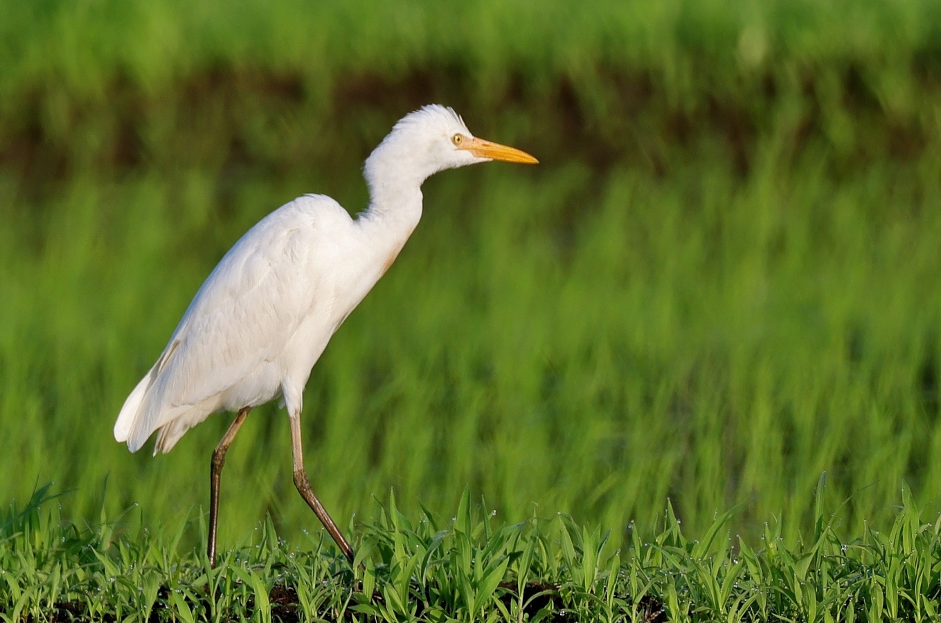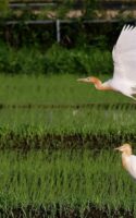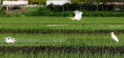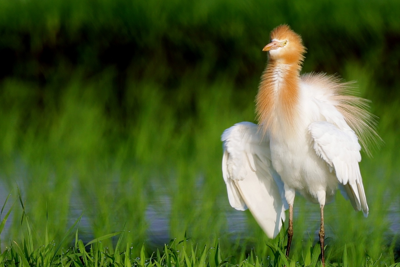 合鴨農法の可愛い雛達を撮っていたらその少し先の田圃に久しぶりにアマサギが4羽!~♪     後で判ったのですがこの日一日だけこの田圃で休んでいた様です~!割とオレンジの色が鮮やかなアマサギ3羽と1羽は胸に少し色が出かかっている綺麗な白のアマサギ!~♪ 合鴨を撮りに行って思わずラッキーな事に~🎵アマサギ君達に出会いました!~♪