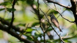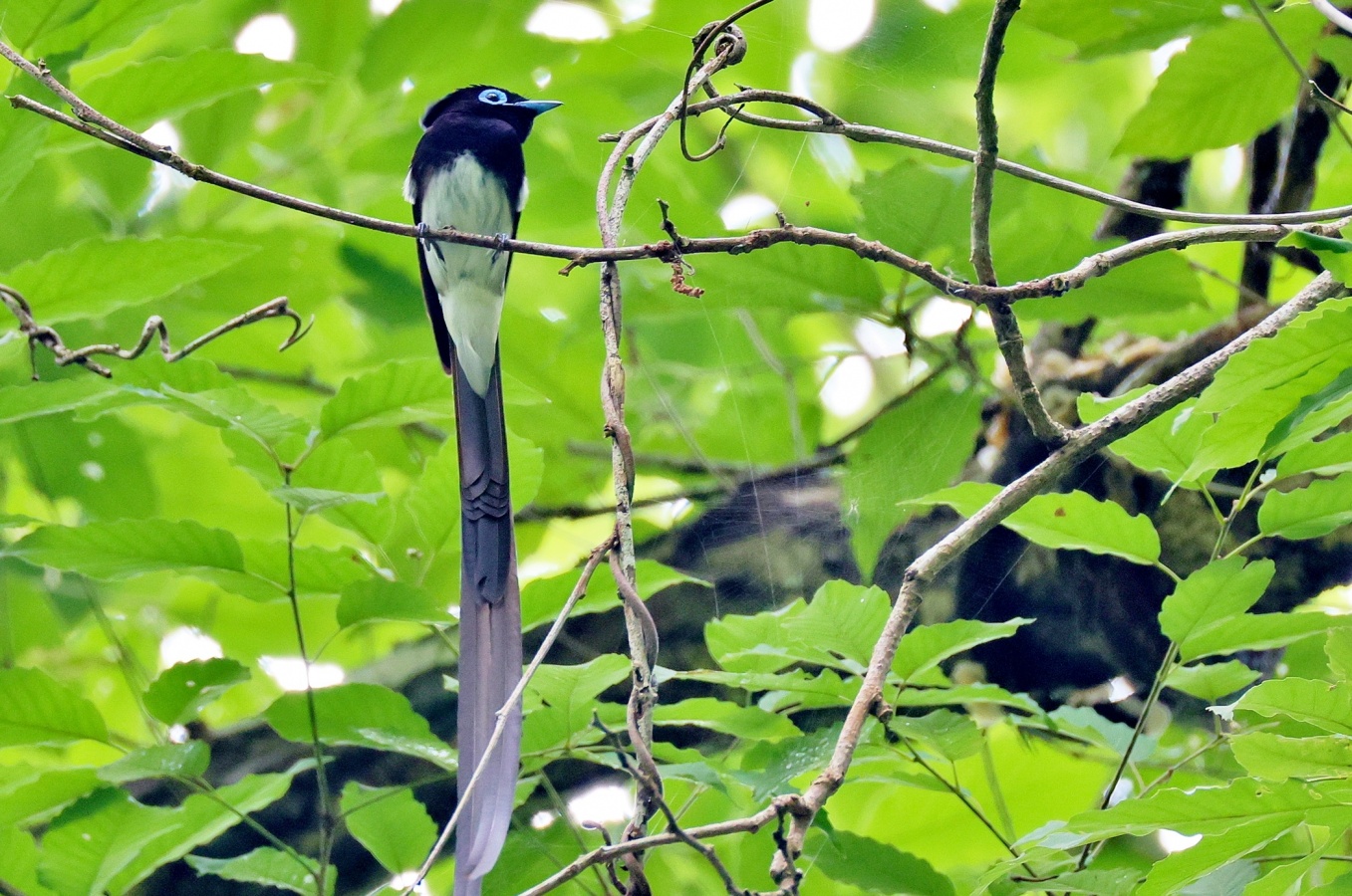 ”3組のサンコウチョウのカップルが居るのですが。そのうちの1羽は長い尾羽が1本の♂で、去年も来て営巣しましたが、三年ながらカラスにやられてしまいその後は何処で巣を造ったかは分かりませんでした。
