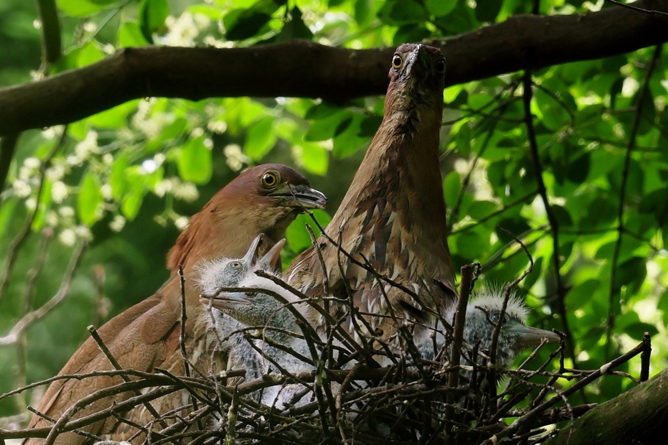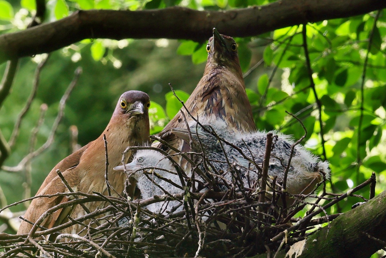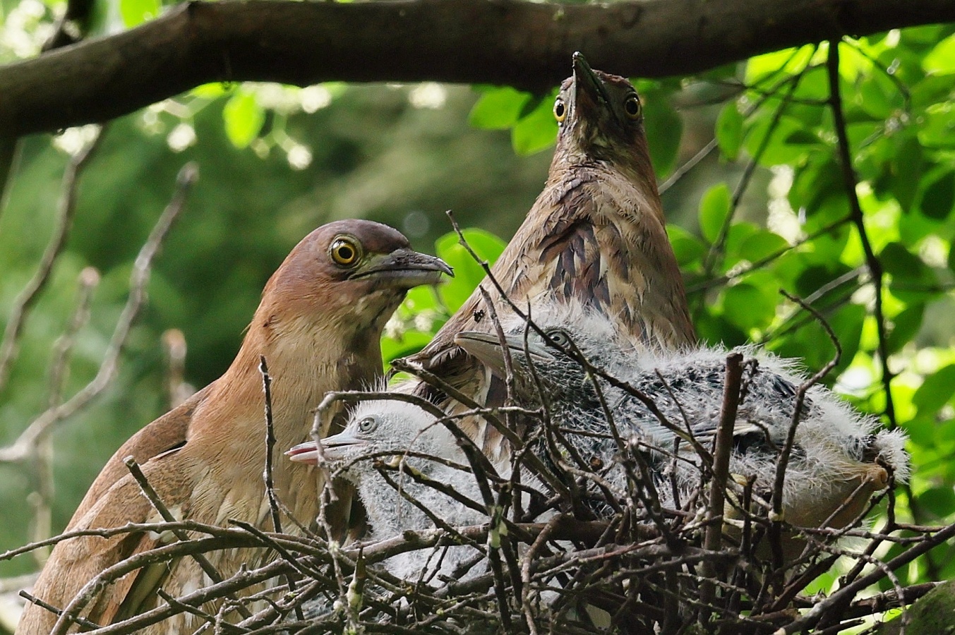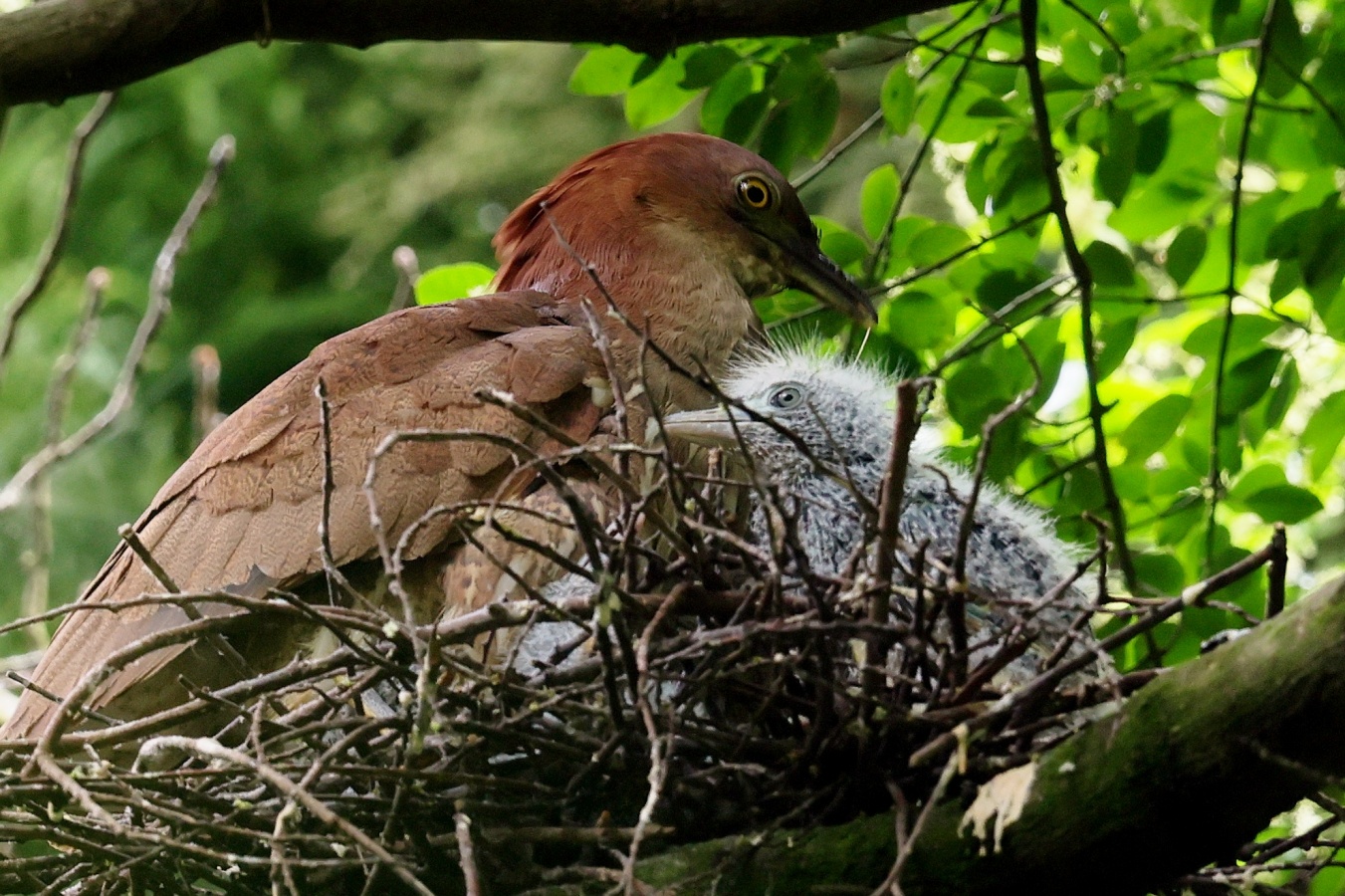 ミゾゴイの雛と給仕・長く伸びた強烈な…〇ンPー!…(笑)給仕でおやの顔から眼まで呑み込んでもらう様子や~はげしい給仕など沢山撮れました!~♪