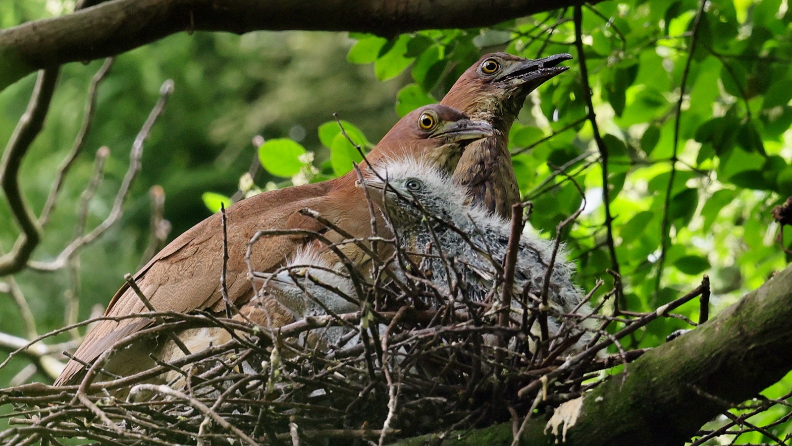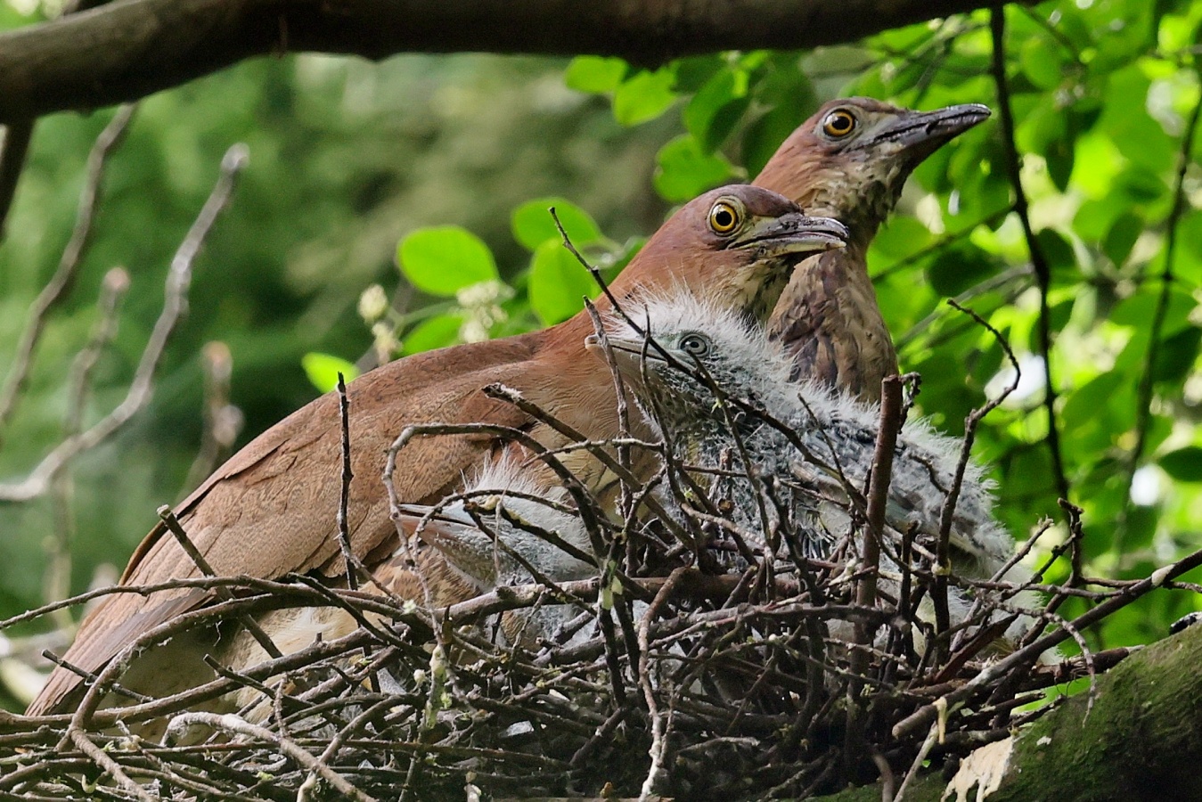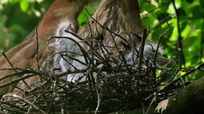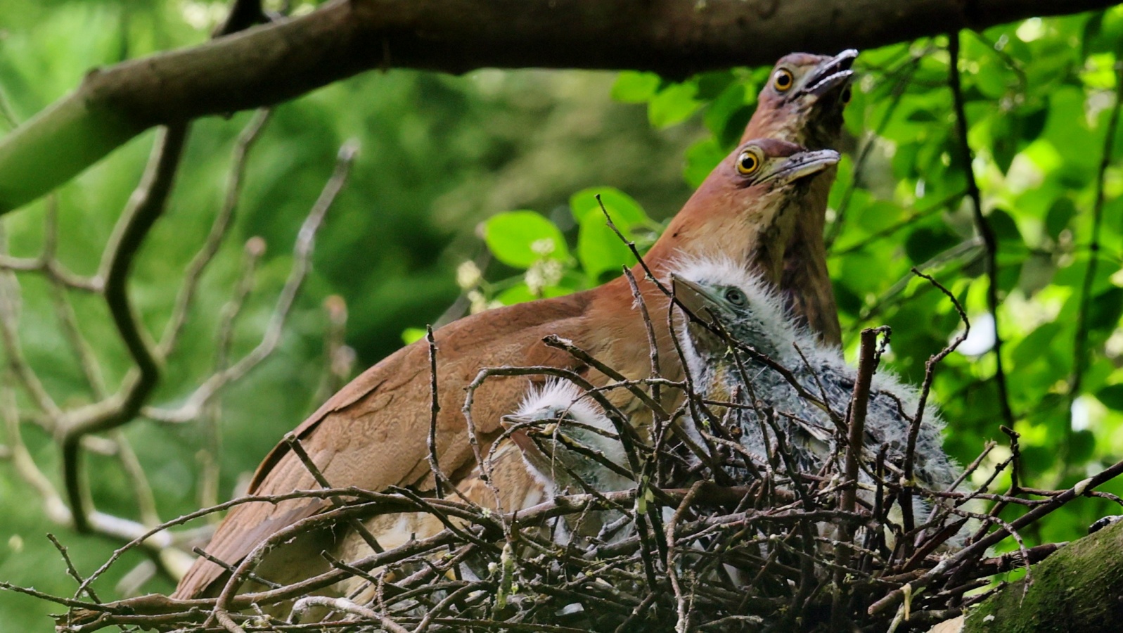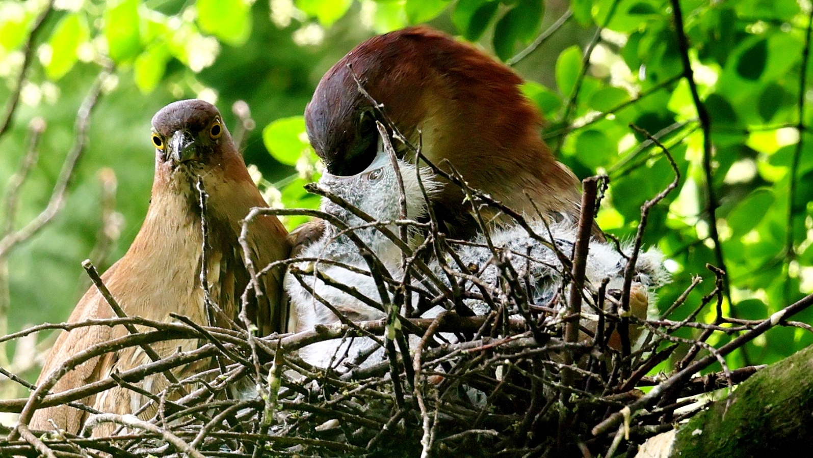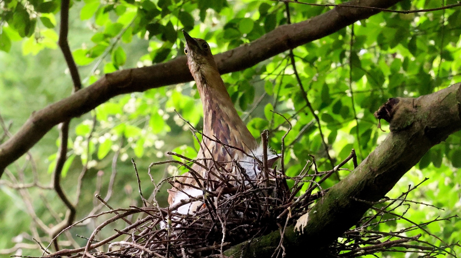 ミゾゴイの雛と給仕・長く伸びた強烈な…〇ンPー!…(笑)給仕でおやの顔から眼まで呑み込んでもらう様子や~はげしい給仕など沢山撮れました!~♪