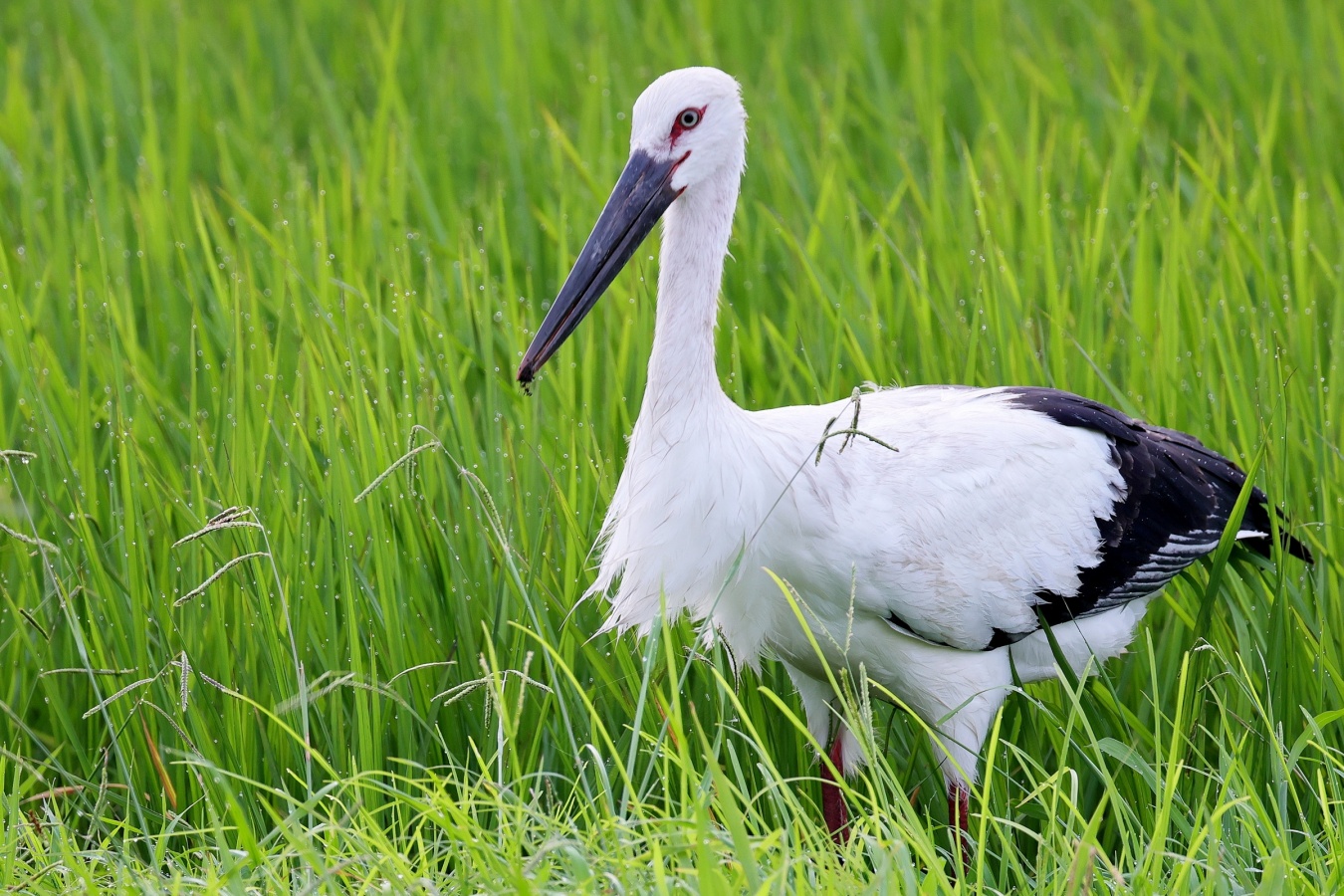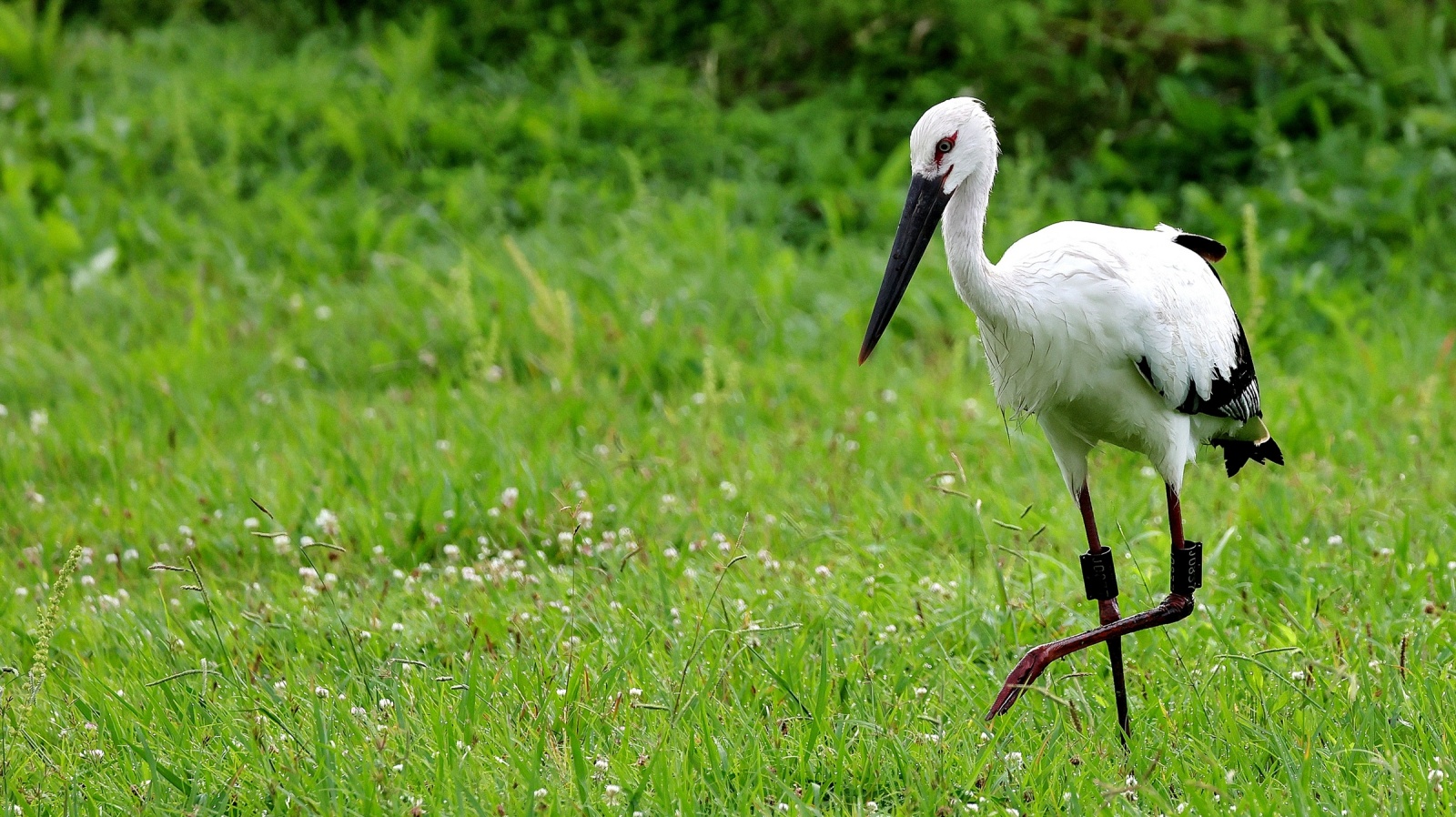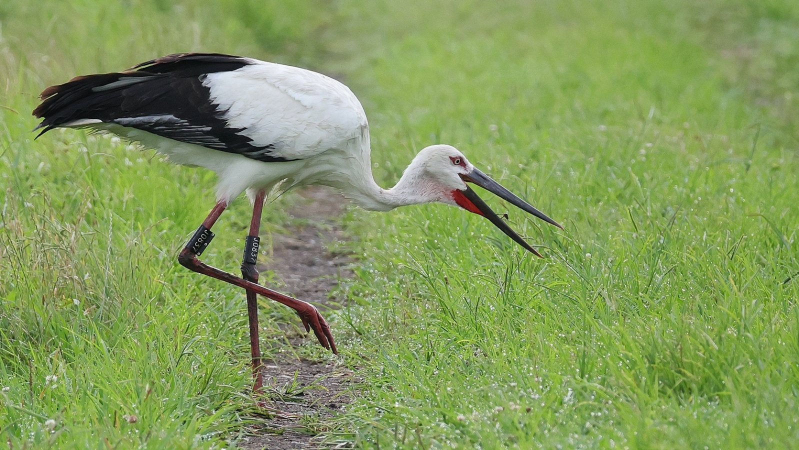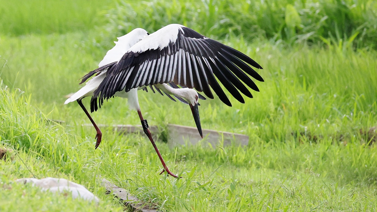 コウノトリが来ていると連絡が入り早朝まだ誰も居ない所で、人馴れしているのか?どんどん近づいてくる若い(識別番号からまだ3カ月の…)幼鳥?が……
