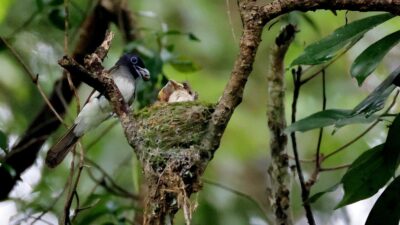 もしかしたら来週辺りが巣立の頃に当たるかもしれません! 早朝の暗い時間に行ってなかなか綺麗に撮るのも難しい条件ですが(ザラザラが慈雨です!)、なんとか濡れながら~