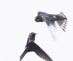 おまけ~曇っていた早朝のツバメ君達! まだ空中給餌が盛んでした!