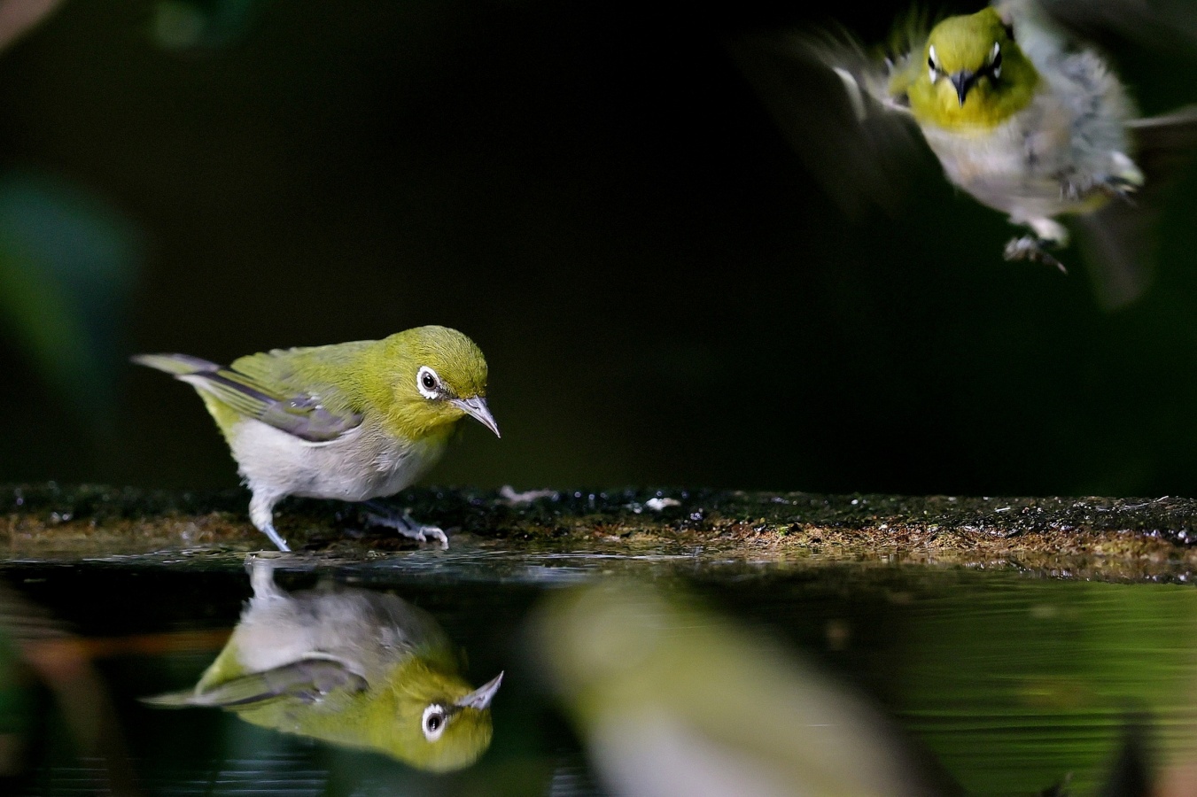 ありふれた鳥さんしか居ません……わざわざ重たい大砲を持ち出したのに~お馴染”水場のメジロ君です1~(笑)