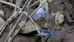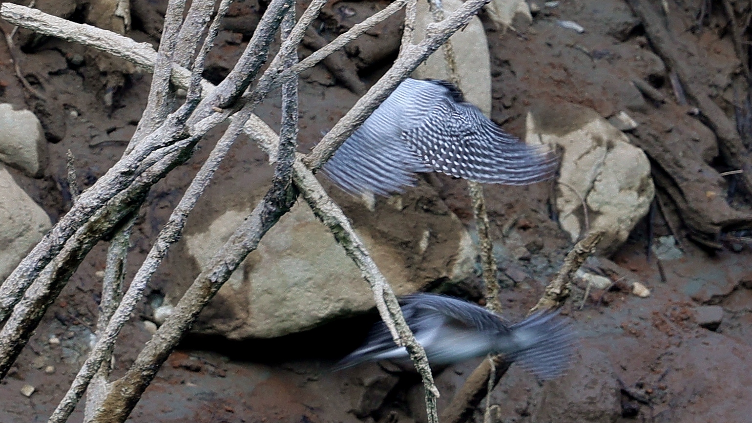 ヤマセミの若い幼鳥が撮れました。……もう自分で餌を採取できる中”2羽の兄弟?で楽しそうにつるんでいました。
