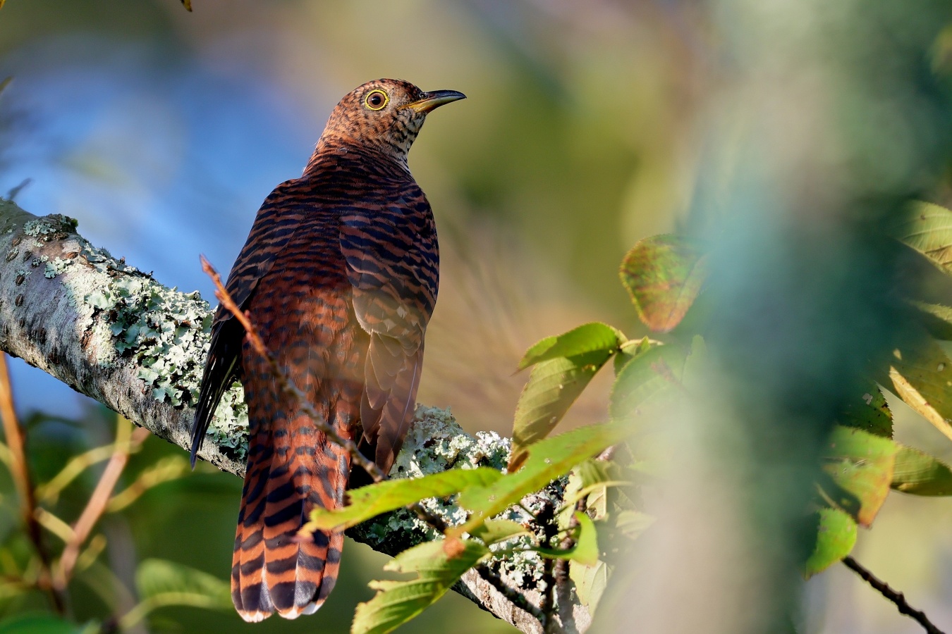 先週に撮ったツツドリが今一な感じがして再度リベンジに行きました。  しかしツツドリの好きな毛虫は沢山いるのですが……もうツツドリの出が極端に悪く、結局”今回現れてくれたのは赤系のツツドリ~たった1羽だけ!~(ガ~ン!) どうやら先週撮れたツツドリ達はもうどこかに行ってしまい、青系も居なかったし今回は居たのはこの1羽だけで,残念ながらリベンジならず!~(笑)……… 今年のこのフィールドでのツツドリはもう終わりなのかもしれません。