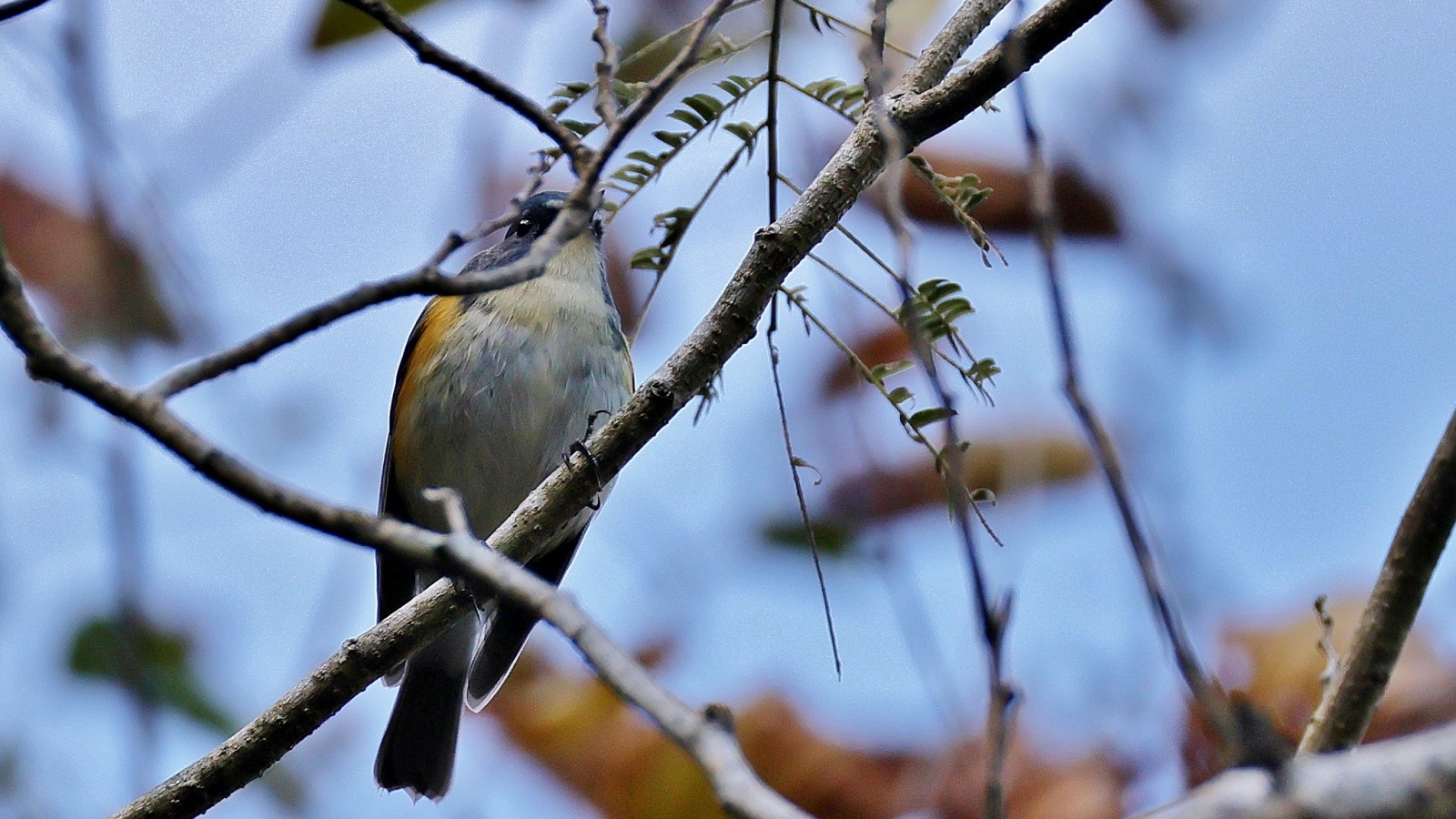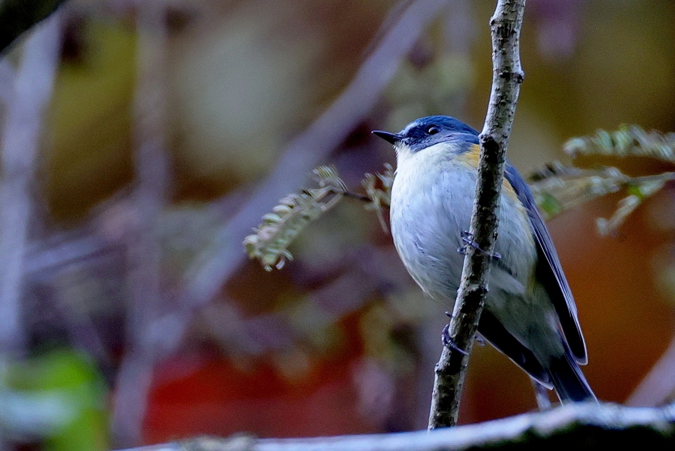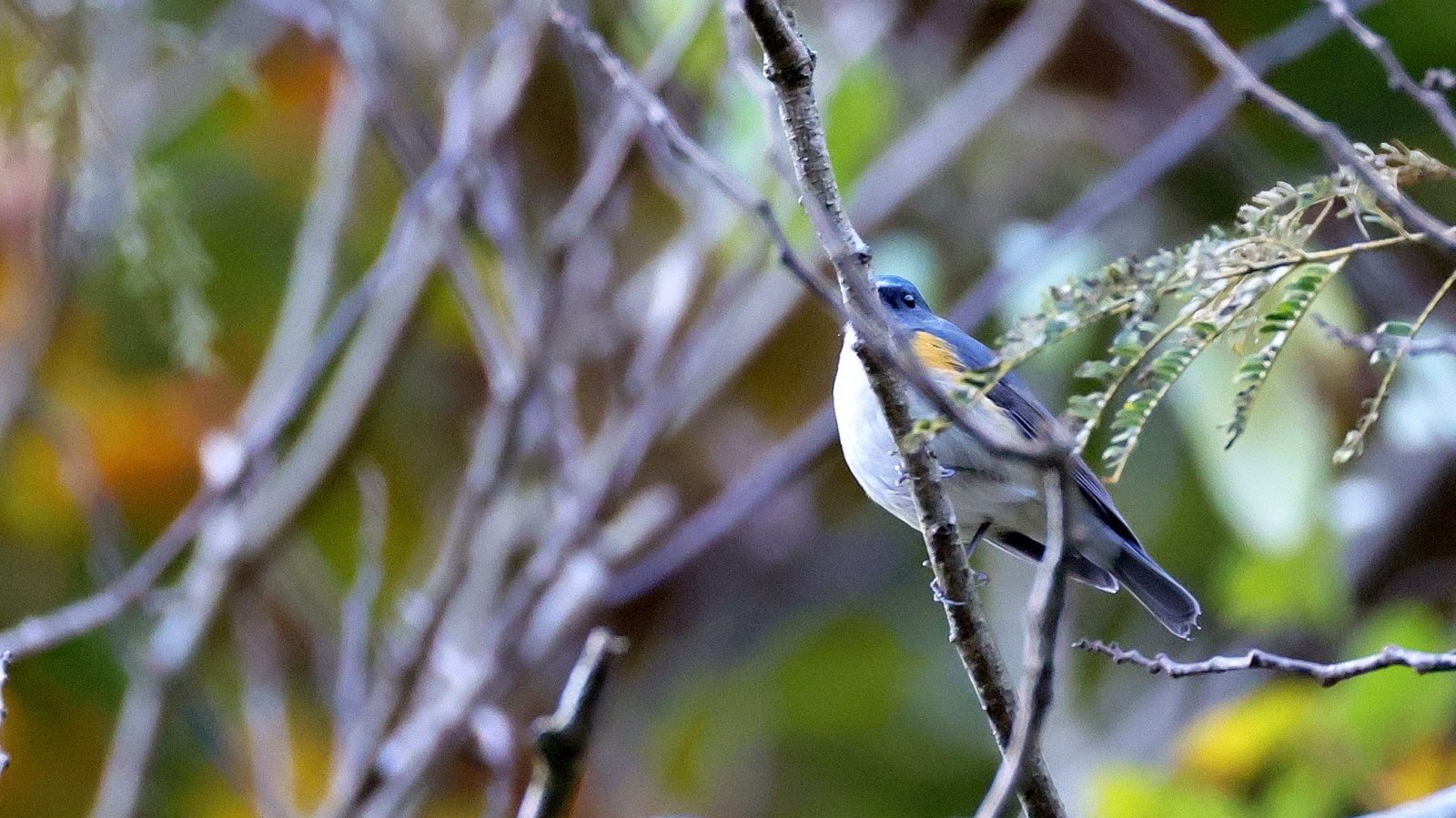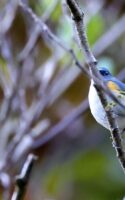 チョット”不安を感じながらも…………ルリビタキの♂の幼鳥か、♀なのかは分かりませんが一部”(笑)