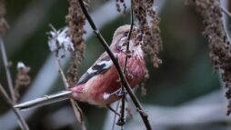 ベニマシコが、青”赤”~すぐ近くで並んだ所を撮ってみたいものです!~(笑)