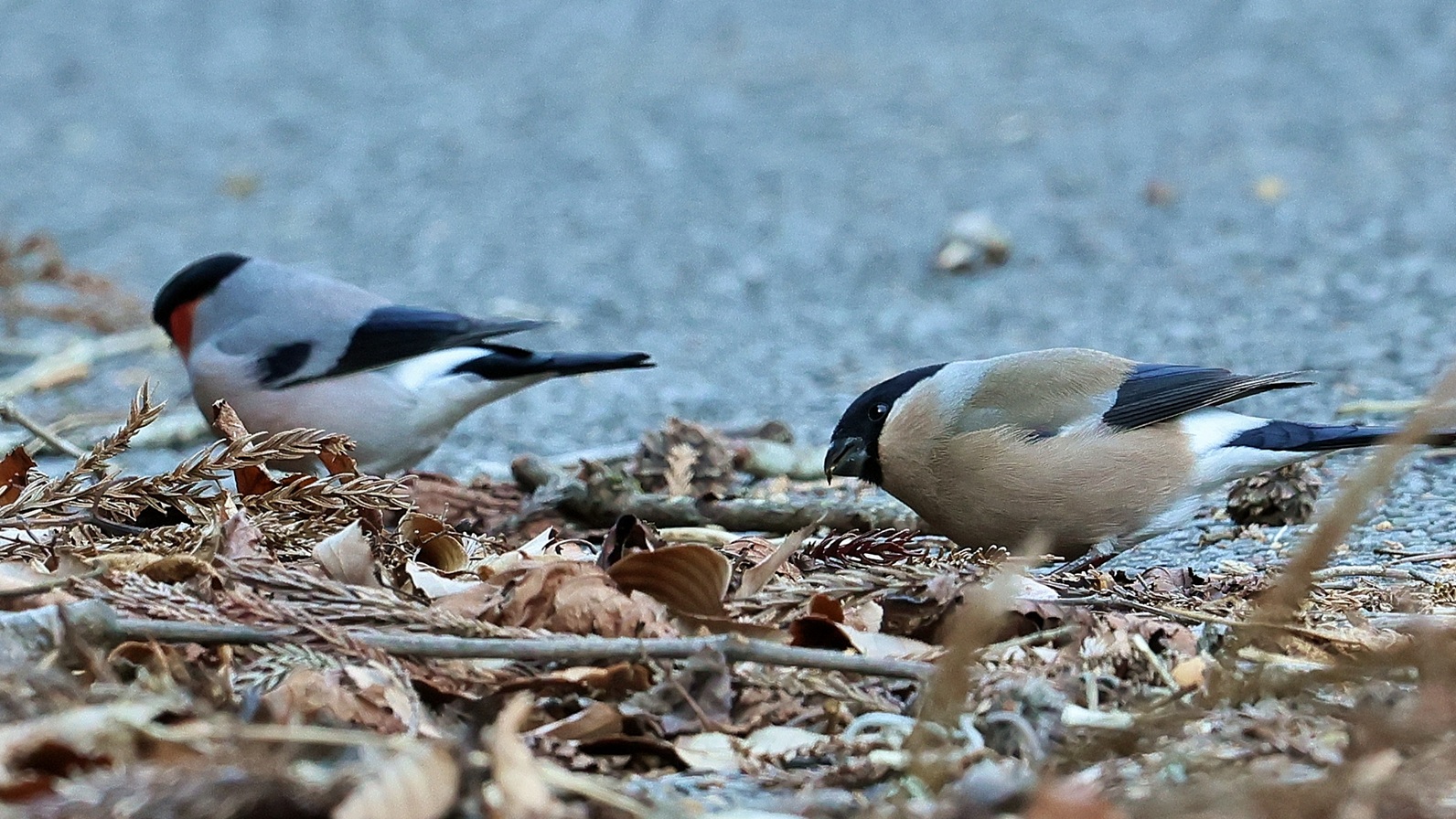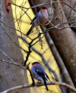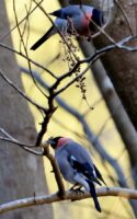 国内で夏場は気温の低い高地などに居るウソが冬場は標高の低い山に降りてきます……。     大陸からやってくるアカウソと留鳥のウソが同じ山に居て、仲間を間違えないのかチョット”心配です。~(笑)今回は留鳥のウソをアップ!~♪