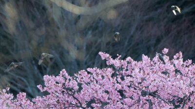 2022年の4月に地元近くの桜の新芽を一生懸命に食べていたウソが